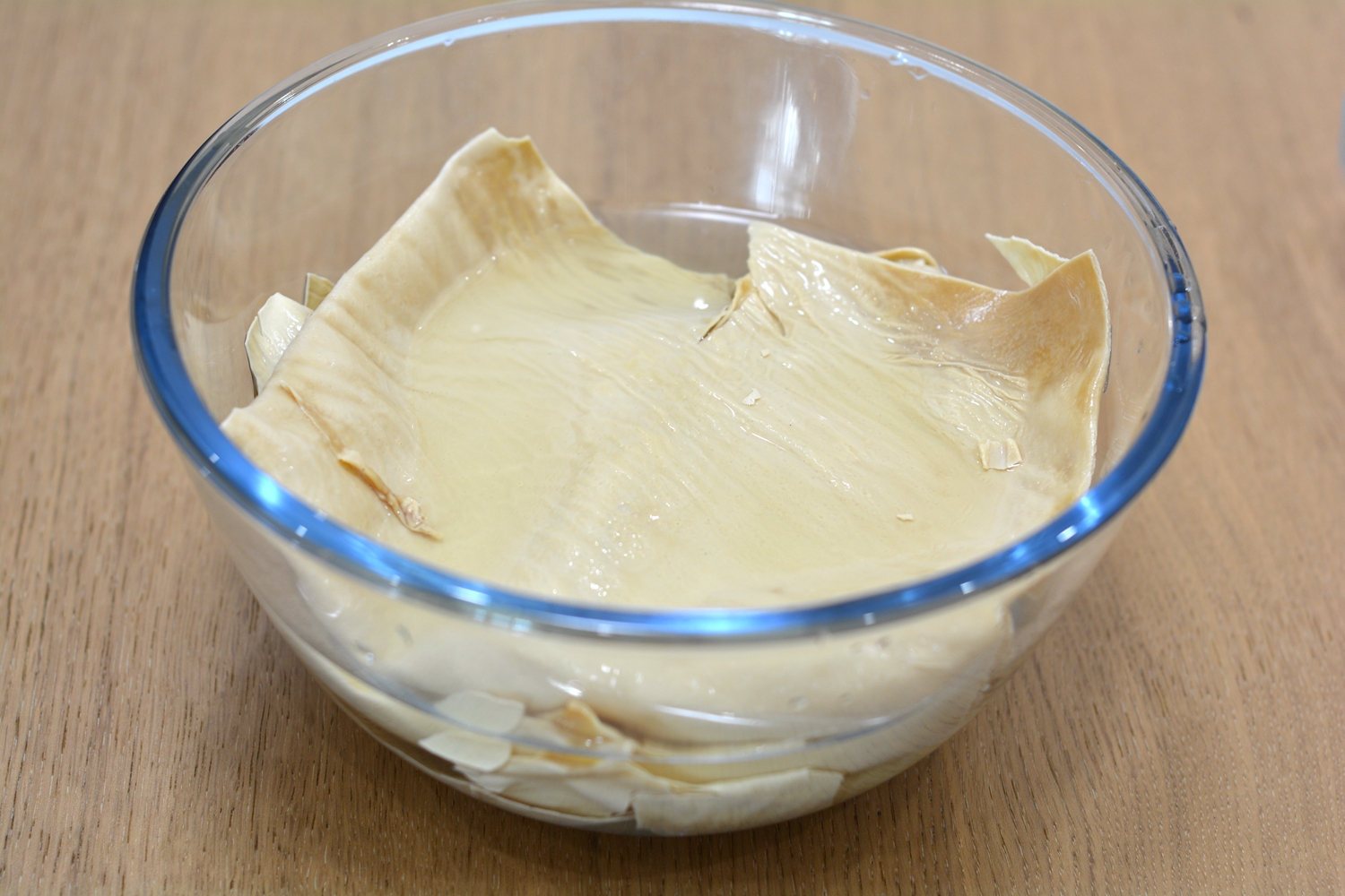 1. 干豆皮又称油豆腐,薄且有韧性,但干的时候极易碎,因此要轻拿轻放,用温水或者凉水提前泡软;