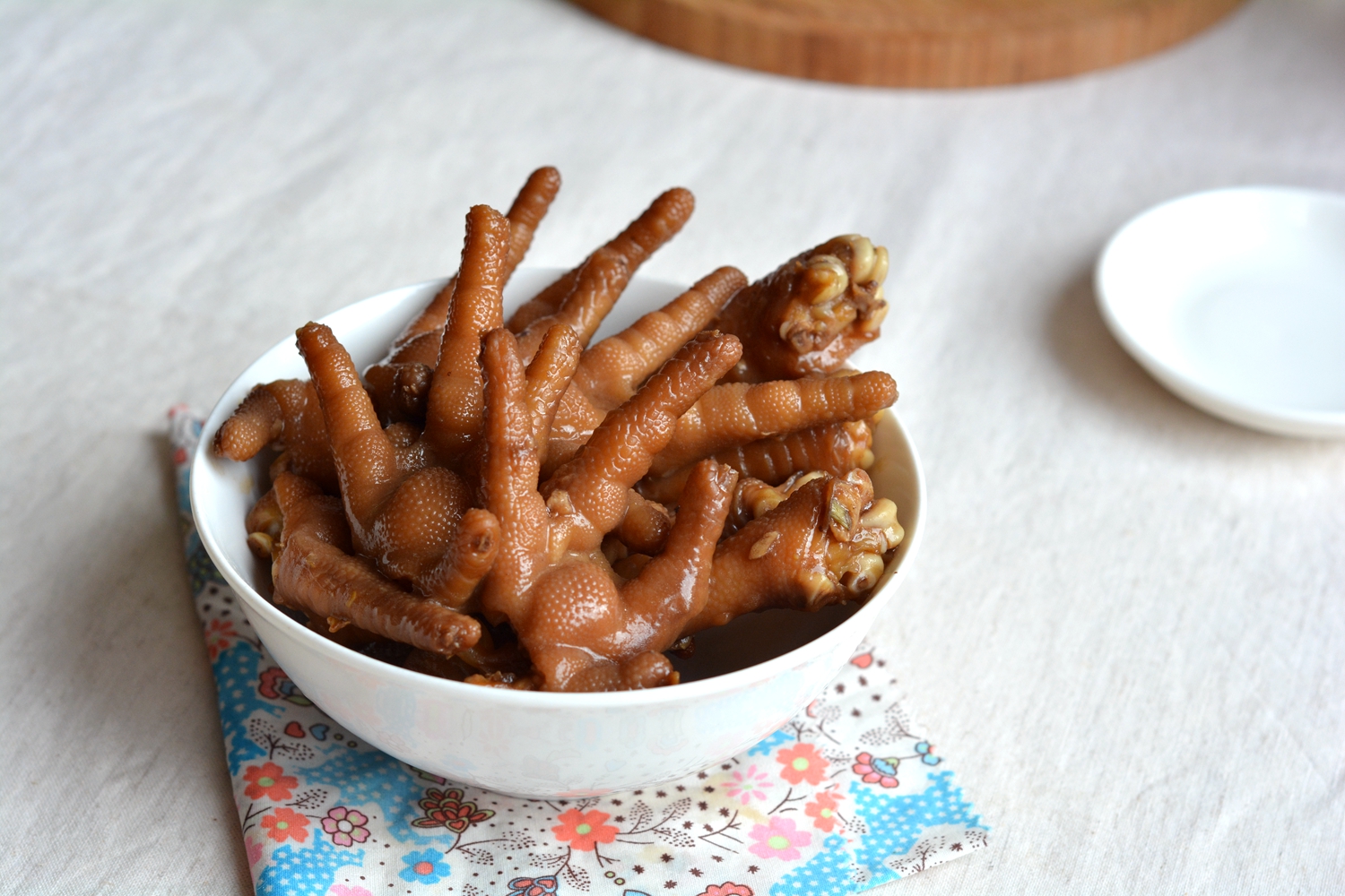 材料:鸡爪10只,油少许,酱油少许,生抽少许,盐少许,冰糖10粒,大蒜数瓣,鲜姜一小块,花椒一撮,八角四个,水适量