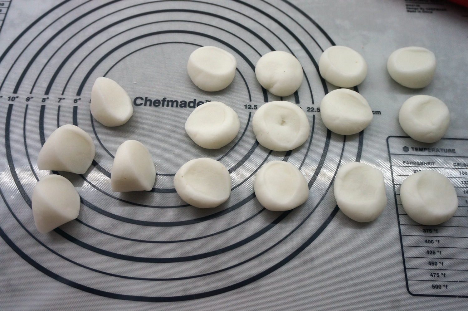 5. 切成大小均匀的剂子,大小可以随自己喜欢,我的切成了饺子剂大小的;再用手掌按扁,厚度约为1公分;http://si1.go2yd.com/get-image/0K4Op07DD3A