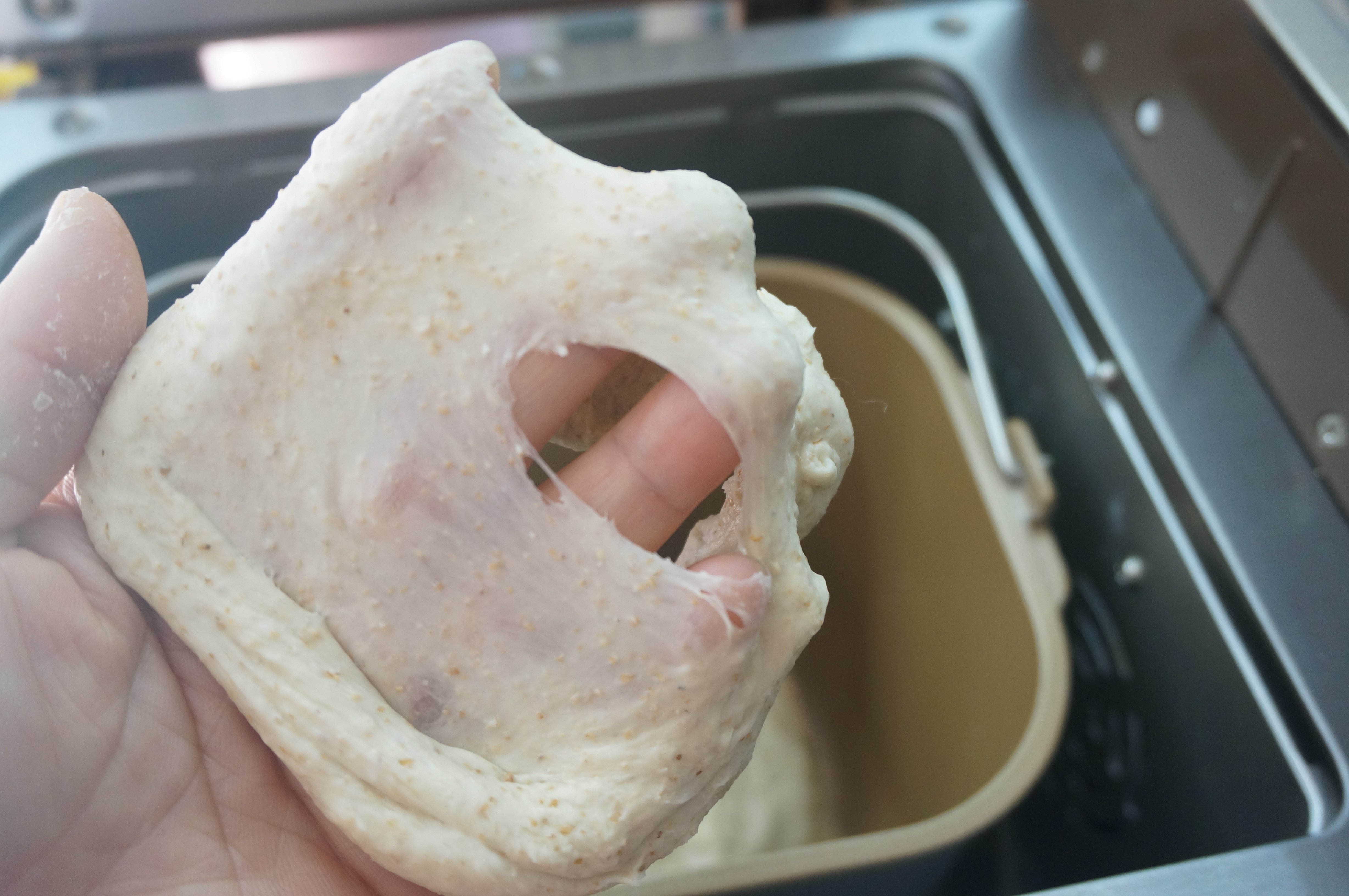 5. 继续揉面约30分钟,能拉扯出透明薄膜且边缘整齐的延展状态;http://si1.go2yd.com/get-image/0K8vbPPHegC