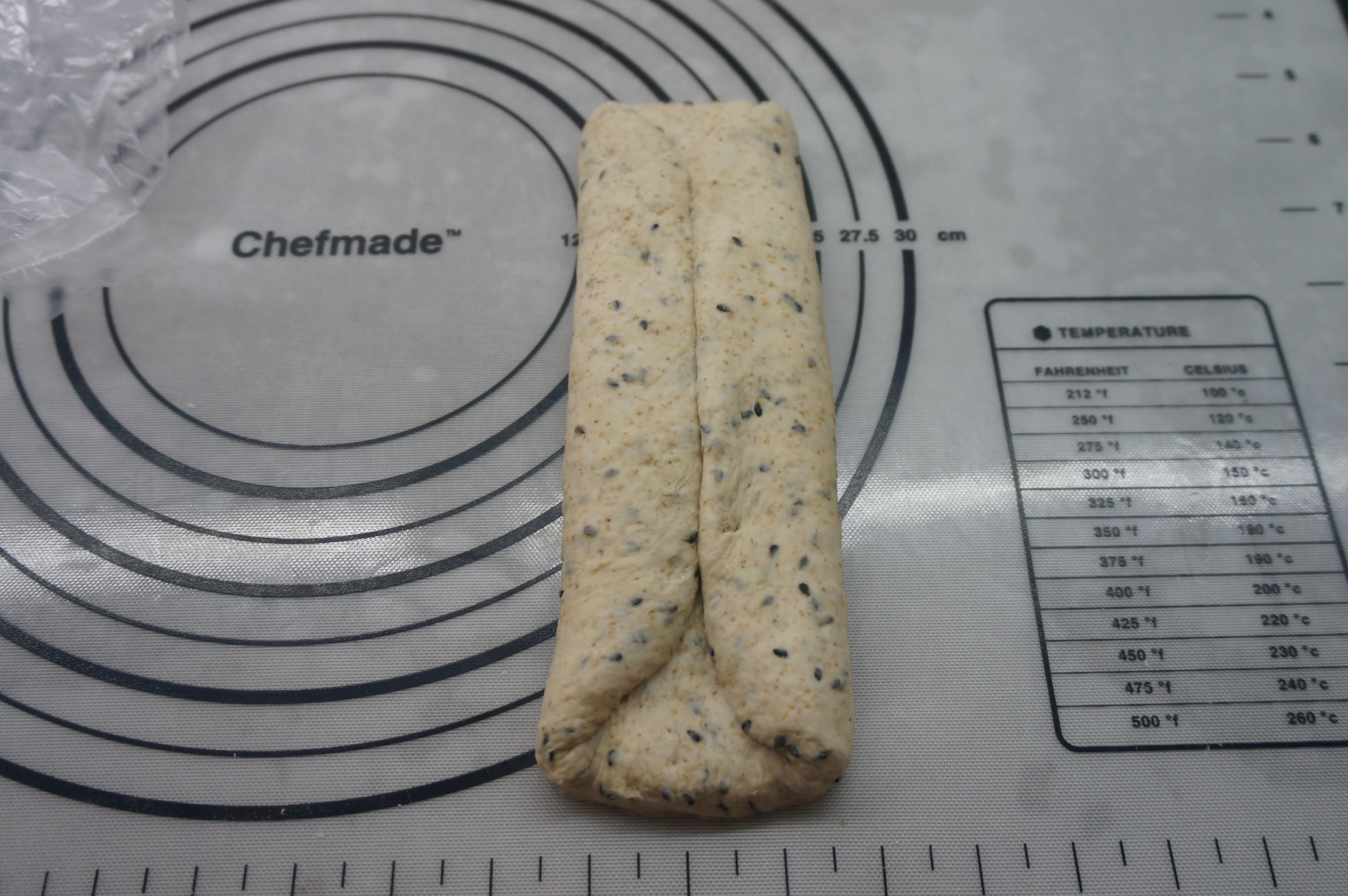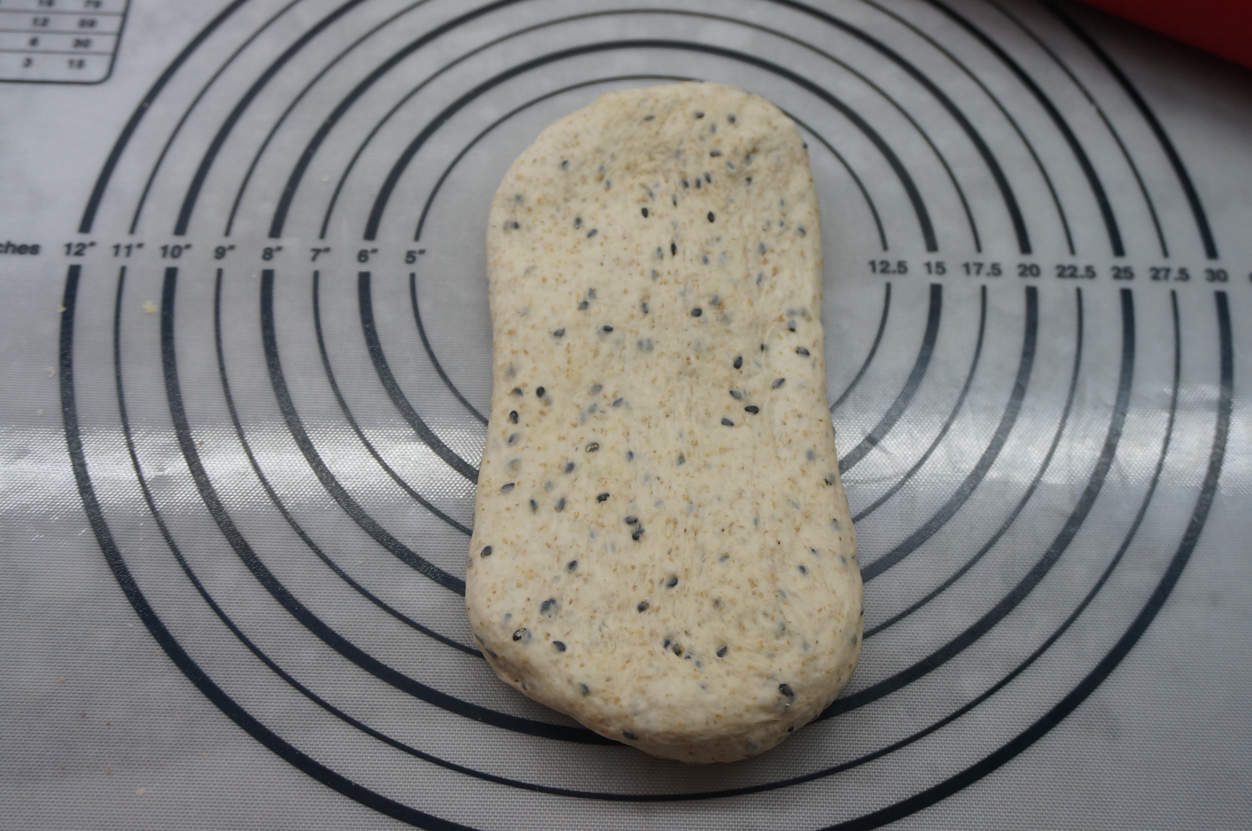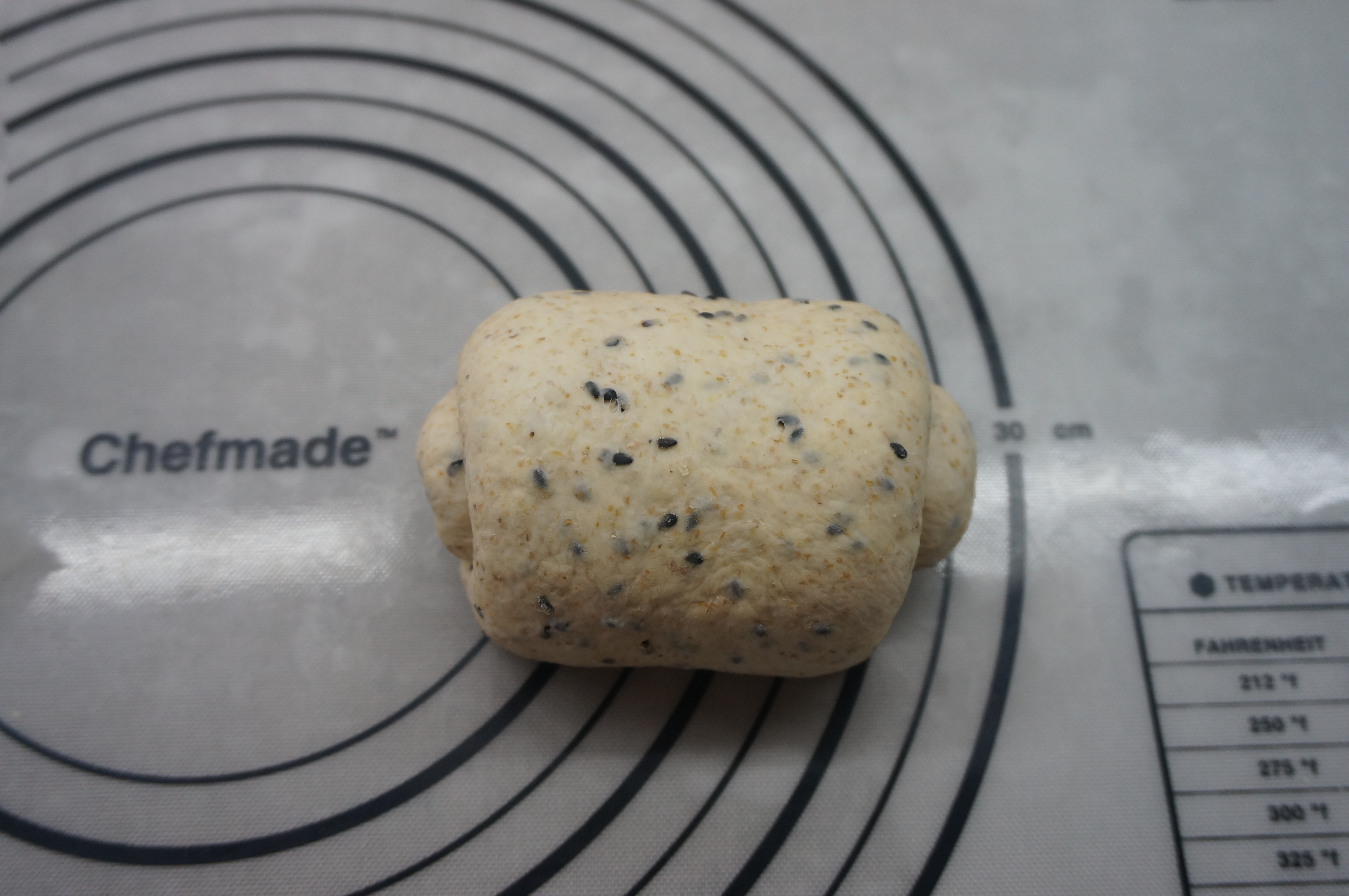 主面团:高筋面粉95克,盐2克,蜂蜜24克,凉水50克,黄油 15克,黑芝麻 20克