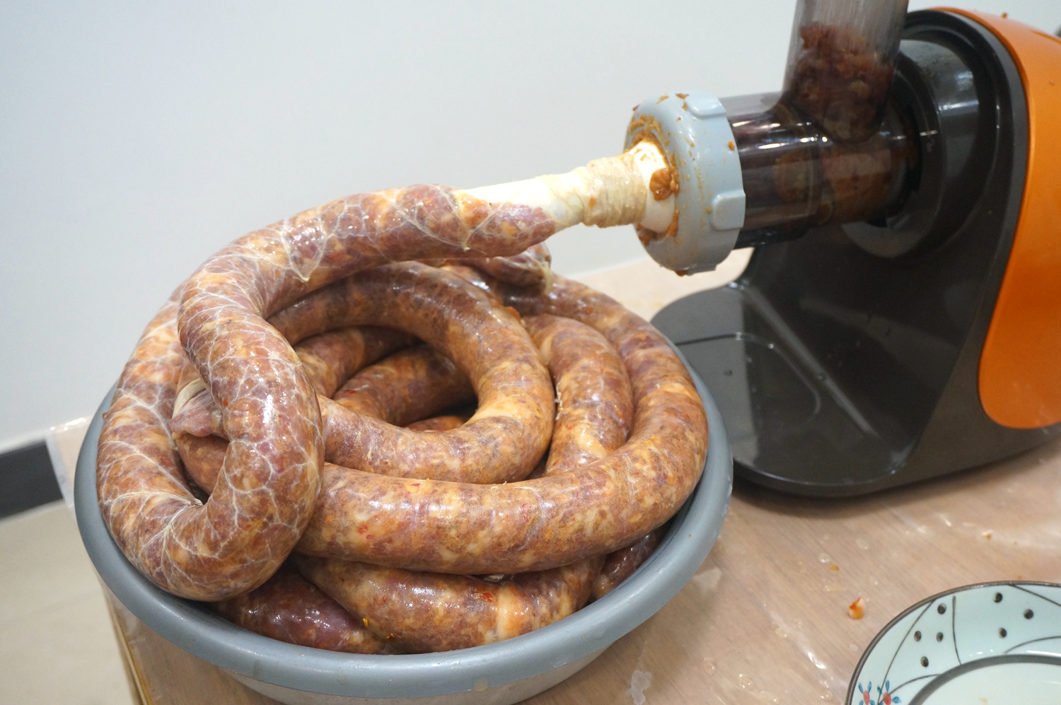 8. 灌好的腊肠好饱满,一会儿就一大盆,老妈可高兴了;http://si1.go2yd.com/get-image/0KAieN6C1Eu