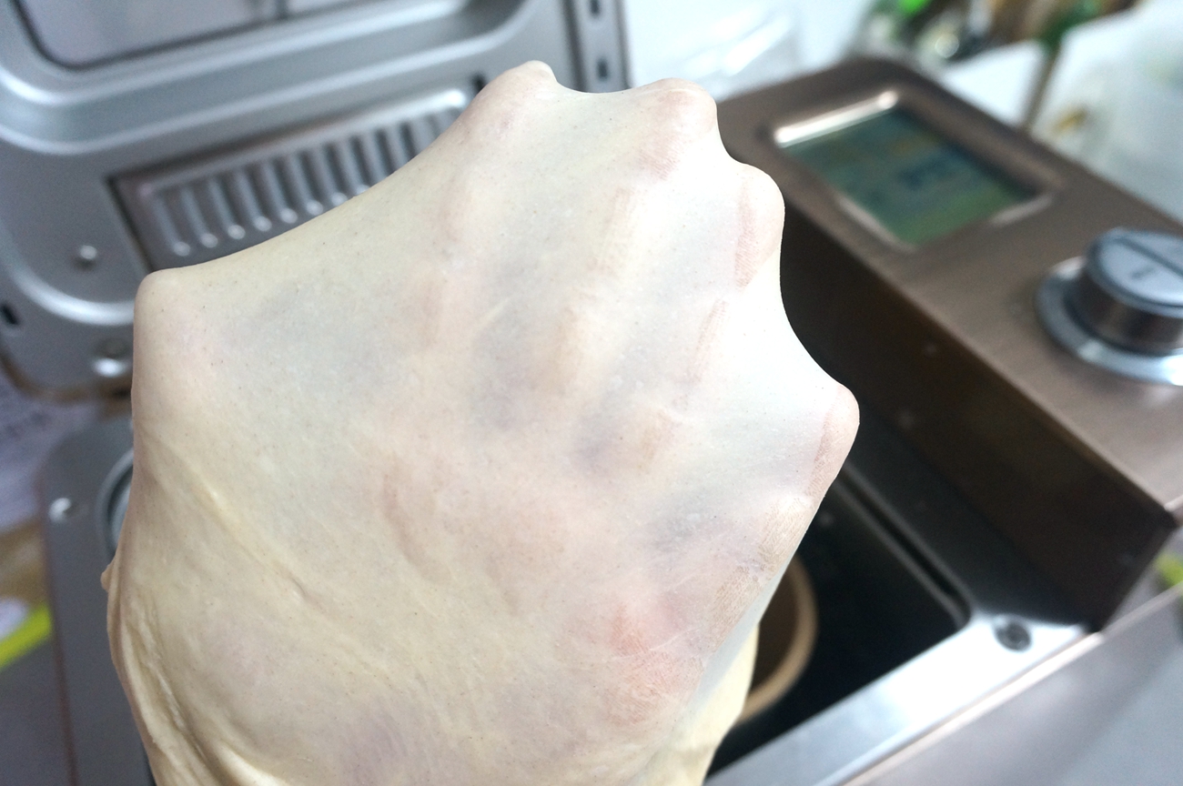 3. 面团能轻拉出透明的薄膜,达到扩展阶段,揉面结束;http://si1.go2yd.com/get-image/0KCTK4Giicy