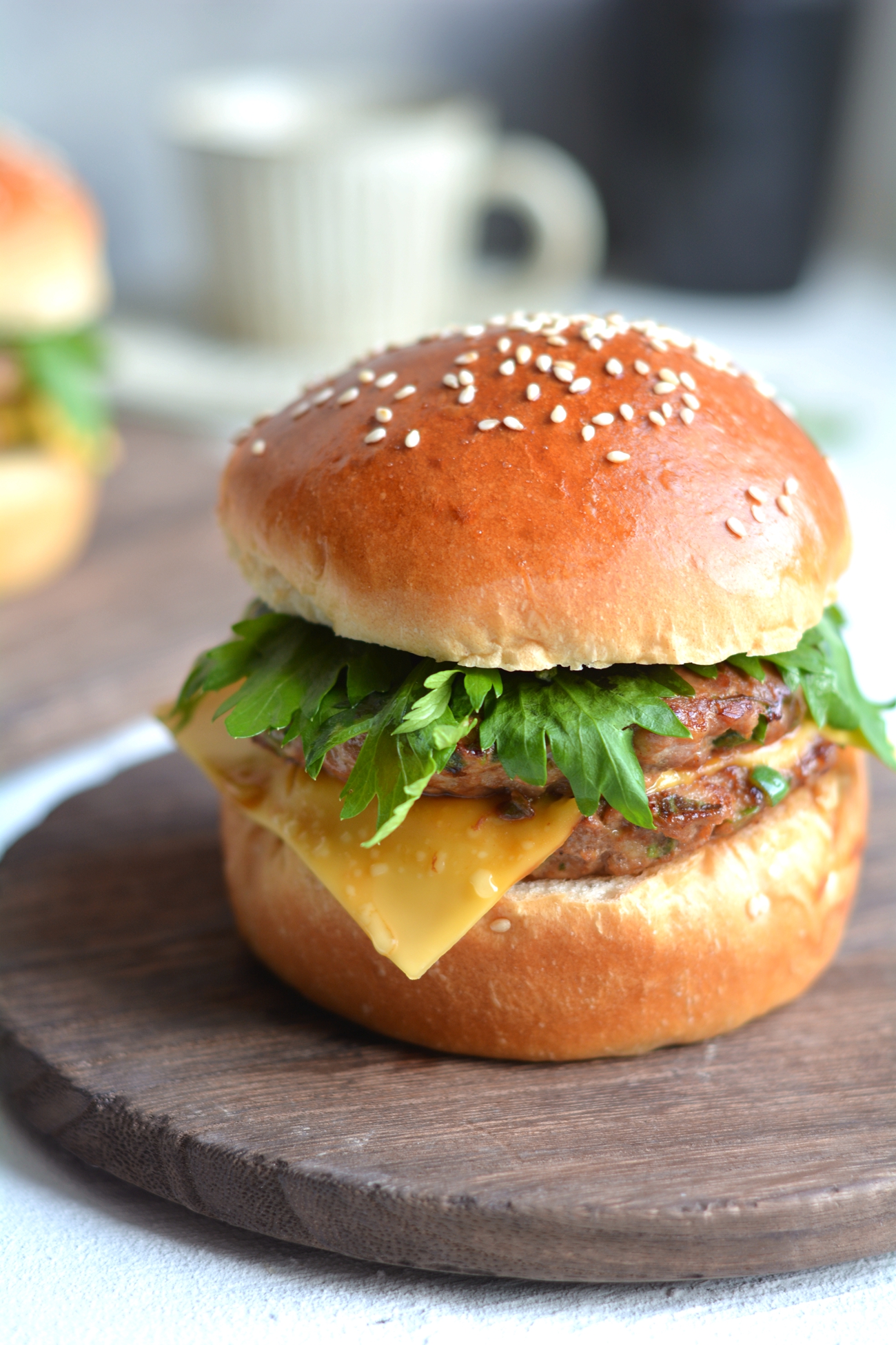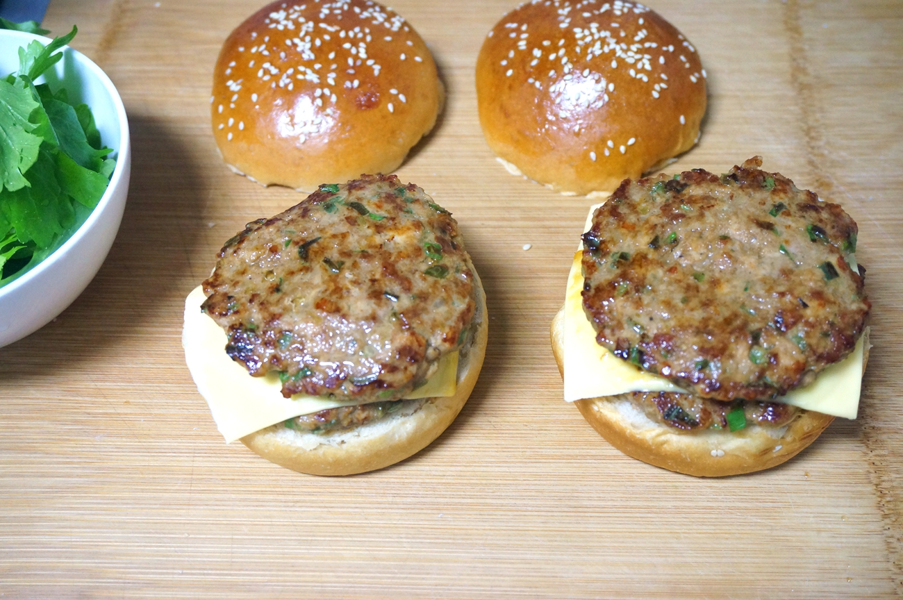 【鲜嫩多汁的猪肉饼黑麦汉堡】