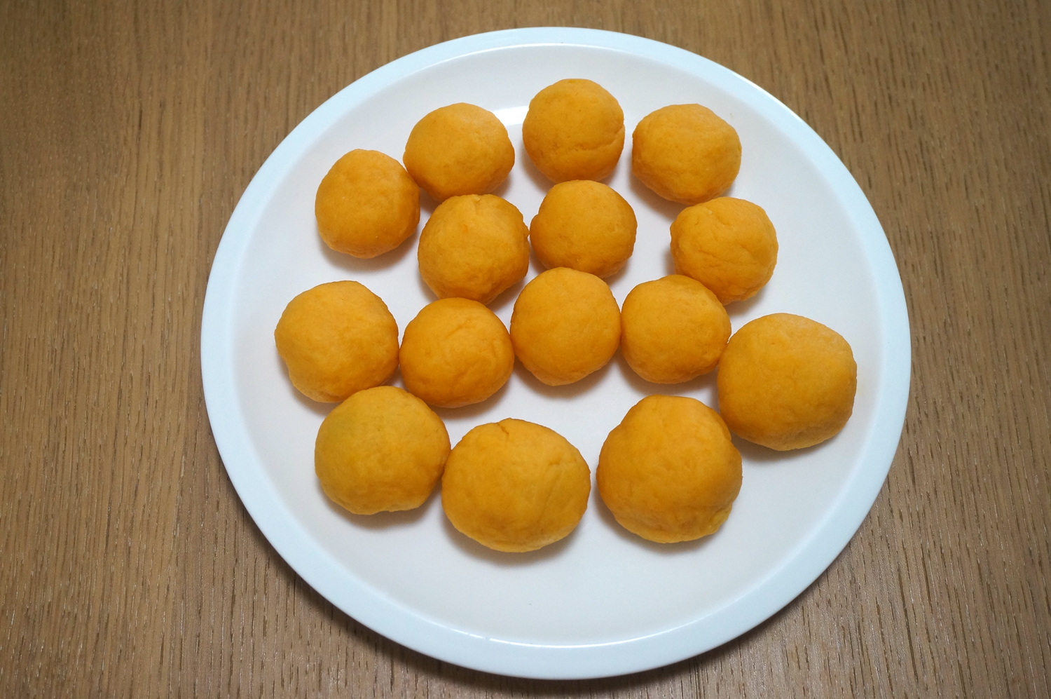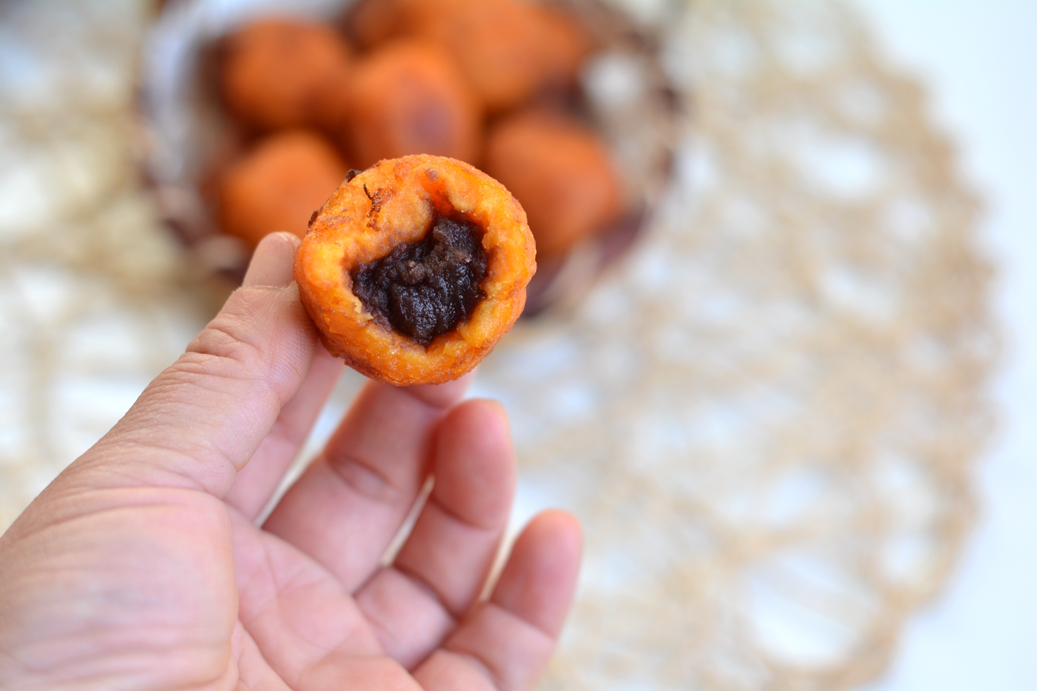 2. 炸的时候不要大火,中小火之间倒一下,因为南瓜是甜的,又加了白糖,所以外皮较容易糊。