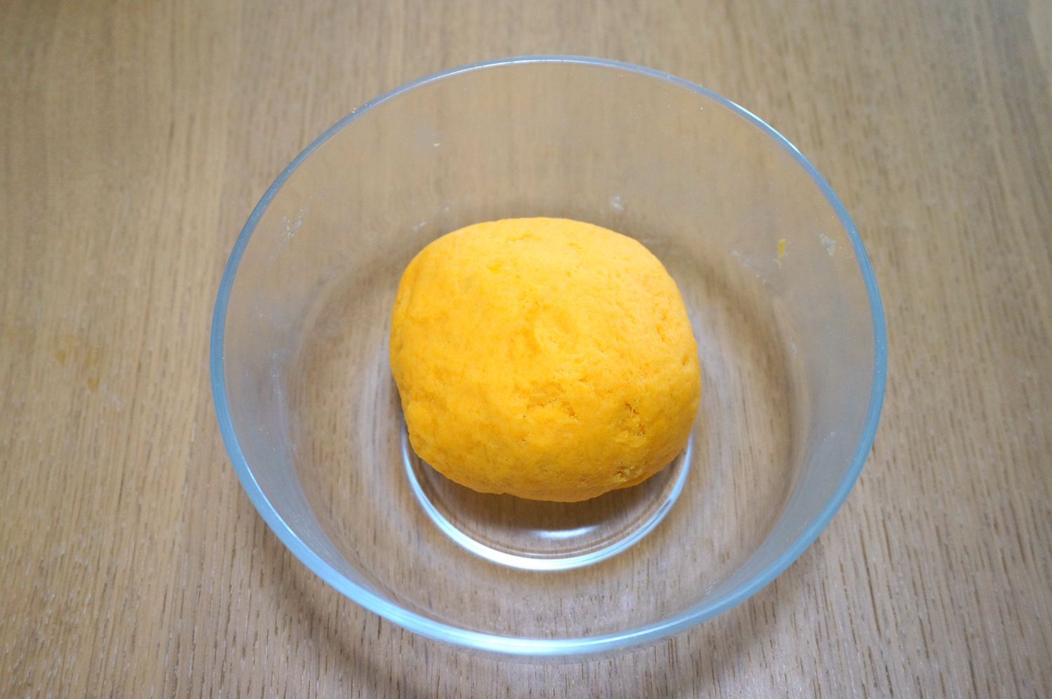 3. 揉成不软不硬的南瓜糯米团,蒙上保鲜膜,饧10分钟左右;http://si1.go2yd.com/get-image/0KKusRrR04m