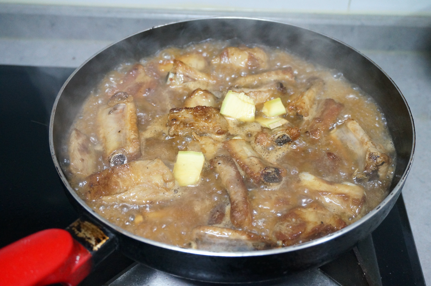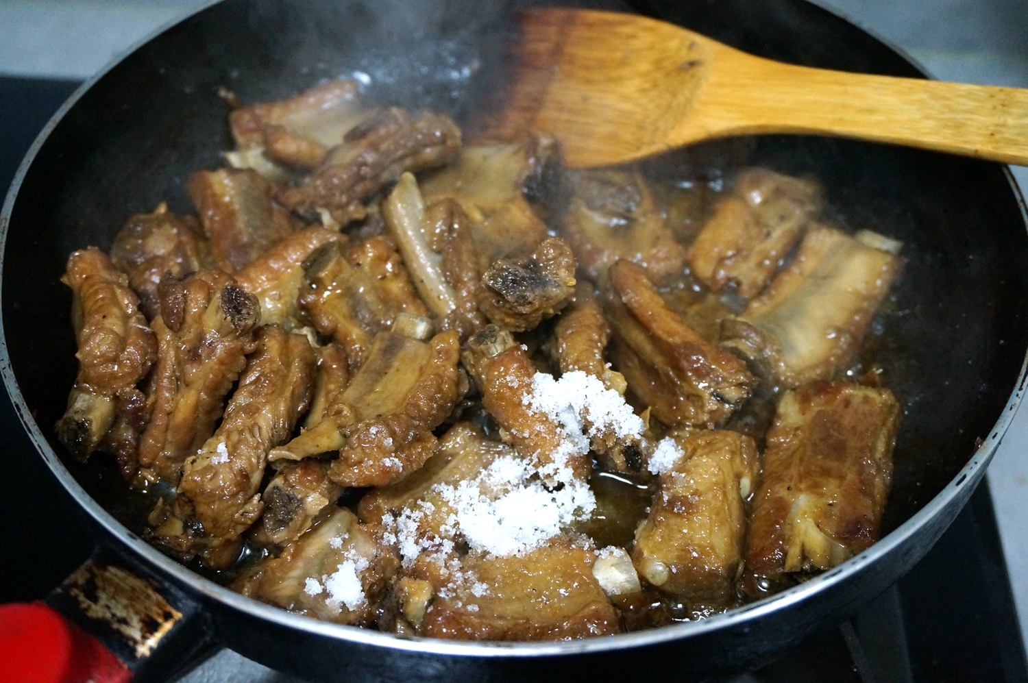 材料:肋排800克,油少许,姜1块,八角1颗,橙子2个,酱油少许,料酒少许,盐适量,白糖1大勺,水适量
