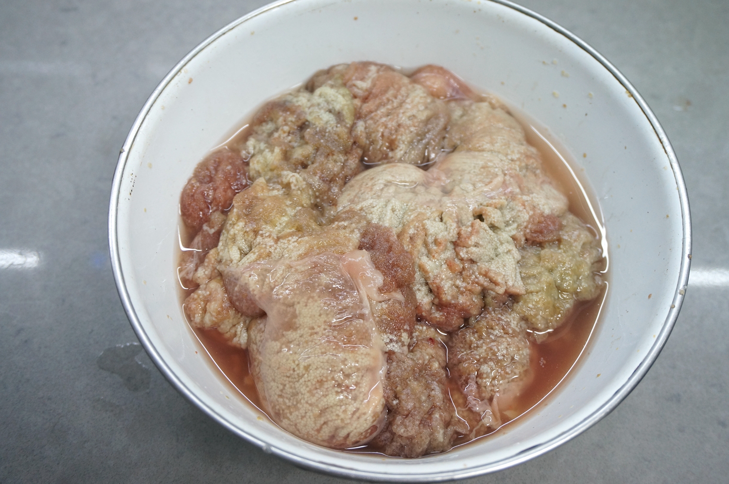 材料:鲤鱼籽600克,大葱1棵、姜1块,干红辣椒1个,油适量,盐适量,酱油少许,料酒少许,凉水一碗