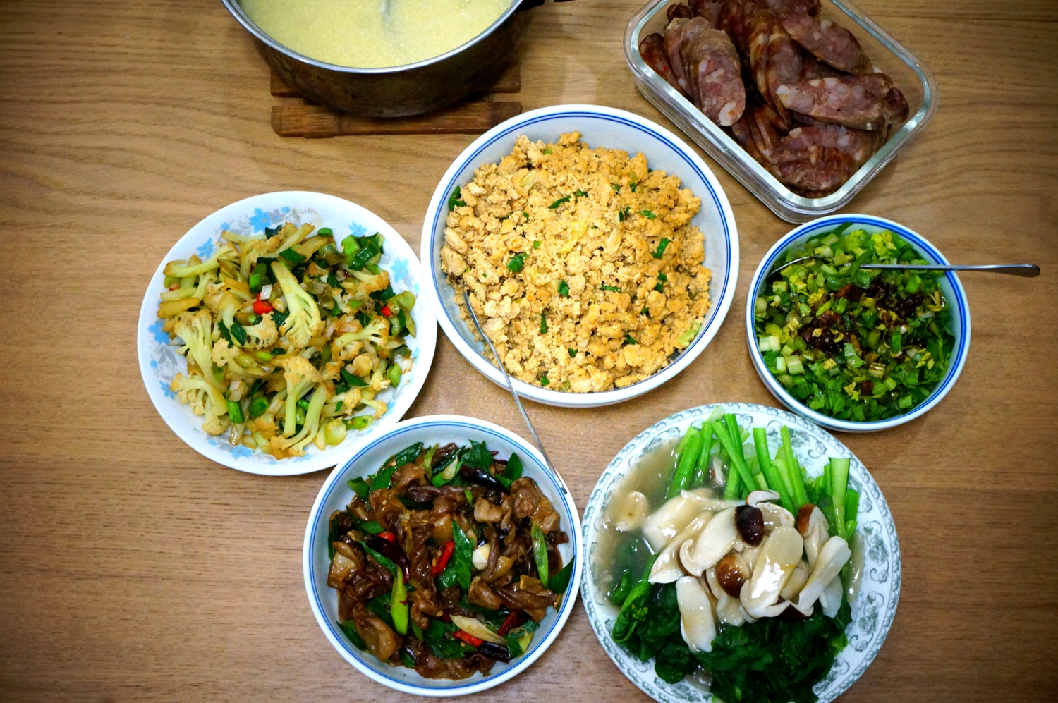 没额外煮汤,就把早上的小米粥热了热,喝了。