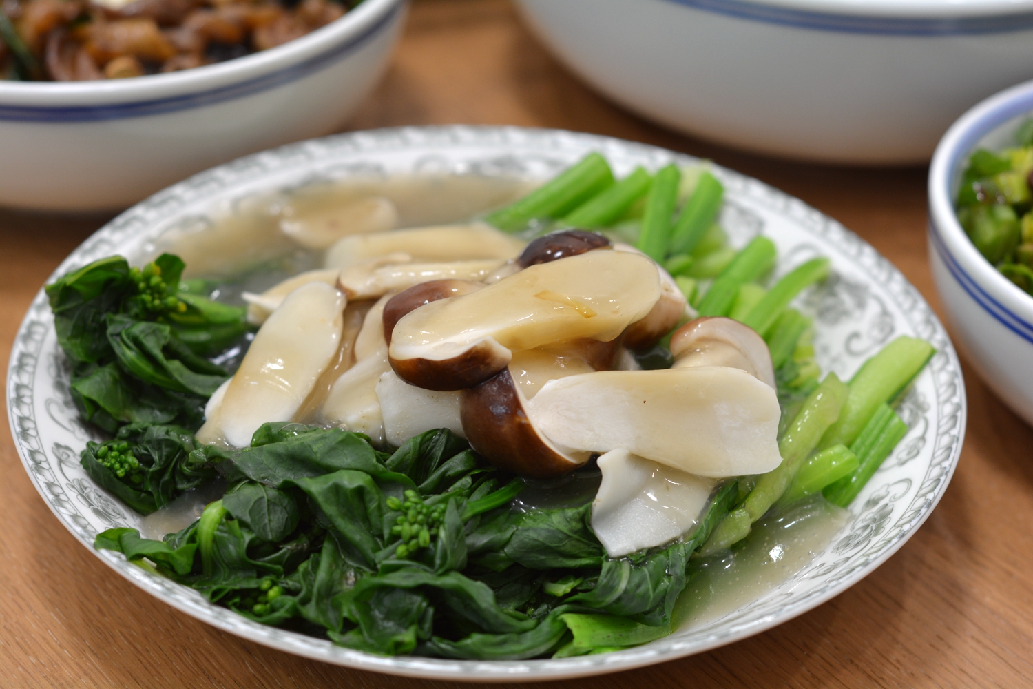 先来一盘清淡的松茸菜芯,一绿一白,嫩嫩的,勾个芡汁就已经很鲜美了。