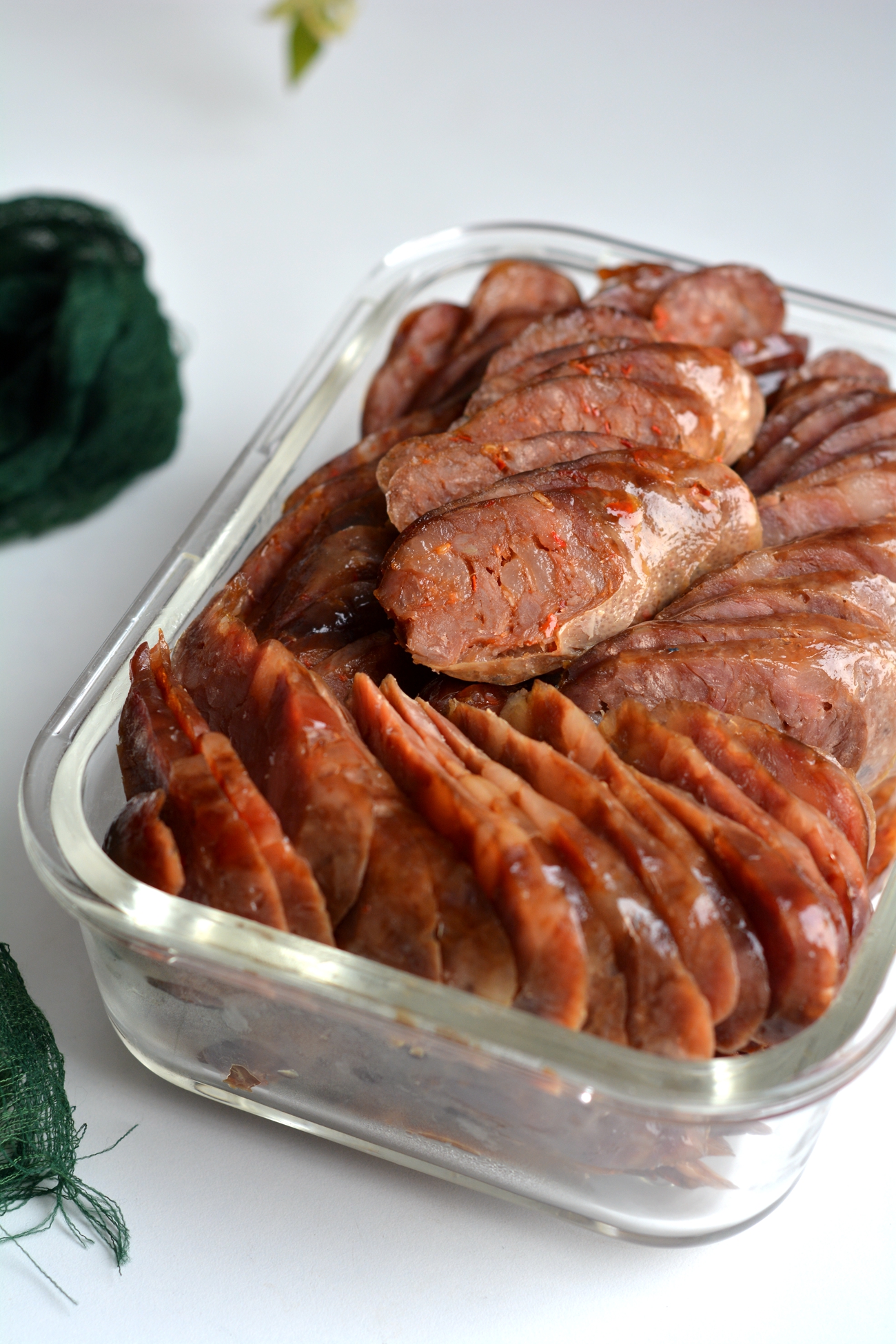 老妈做的腊肠,下午蒸熟了,我们都当成零食给吃了不少,下面这图还是有温度的。