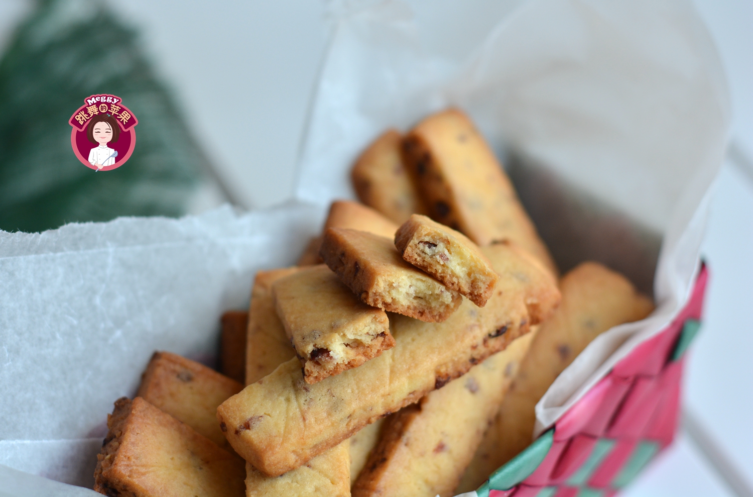 1. 此配方的酥条轻拿轻放,也可将蔓越莓干换成其它果干或者坚果碎;