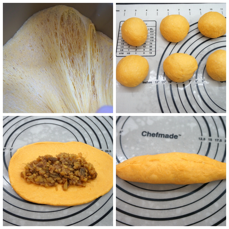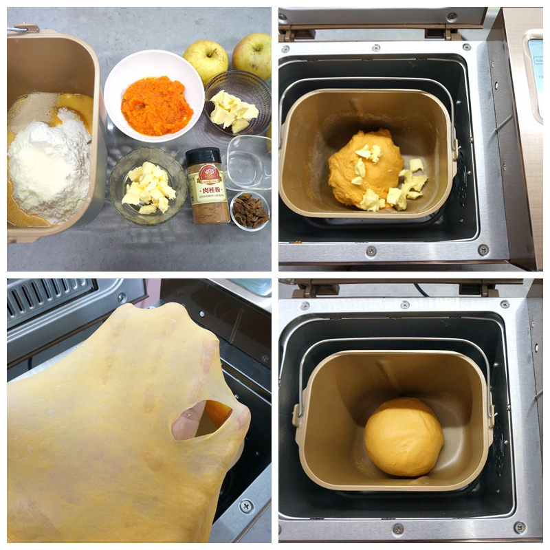 没事儿,咱自己做面包就这么个优势,想什么时候做都成。这不,我把南瓜泥揉进面团,金灿灿如阳光般耀眼,而且还有南瓜特有的香气。苹果我多放了一个,这样可以多做些馅。既然孩子爱吃,妈妈就要花点时间来满足他,尤其这春天了,更是长身体的时候,多吃体质好,而且还能趁着这个季节猛“蹿个儿”。