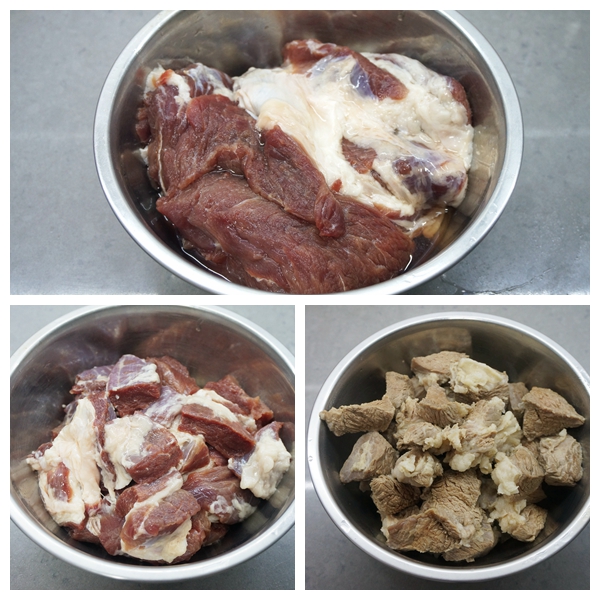 2. 牛肉切成鸡蛋大小的块,块儿小吃着没感觉,也不豪爽;