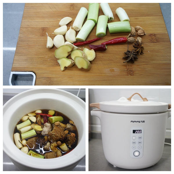 6. 盖上盖子,选择“炖汤”程序,用时2小时,这个时间足够了,无需再加时;没有九阳北山炖锅,用普通锅子要小火慢炖,如果用高压锅会熟得快,但味道不及慢炖的香;所以您可以根据自己的时间和喜好来选择;
