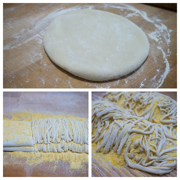 9. 切好的面条堆一堆儿,玉米面先不要抖掉,入锅前再抖下来,如果当时不煮,盖上塑料袋防止水份蒸发;