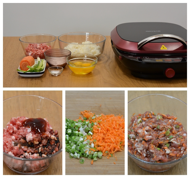 个,肉馅适量,香葱4根,胡萝卜1段,盐适量,酱油少许,蚝油少许,黑胡椒粉少许,凉水少许,植物油适量