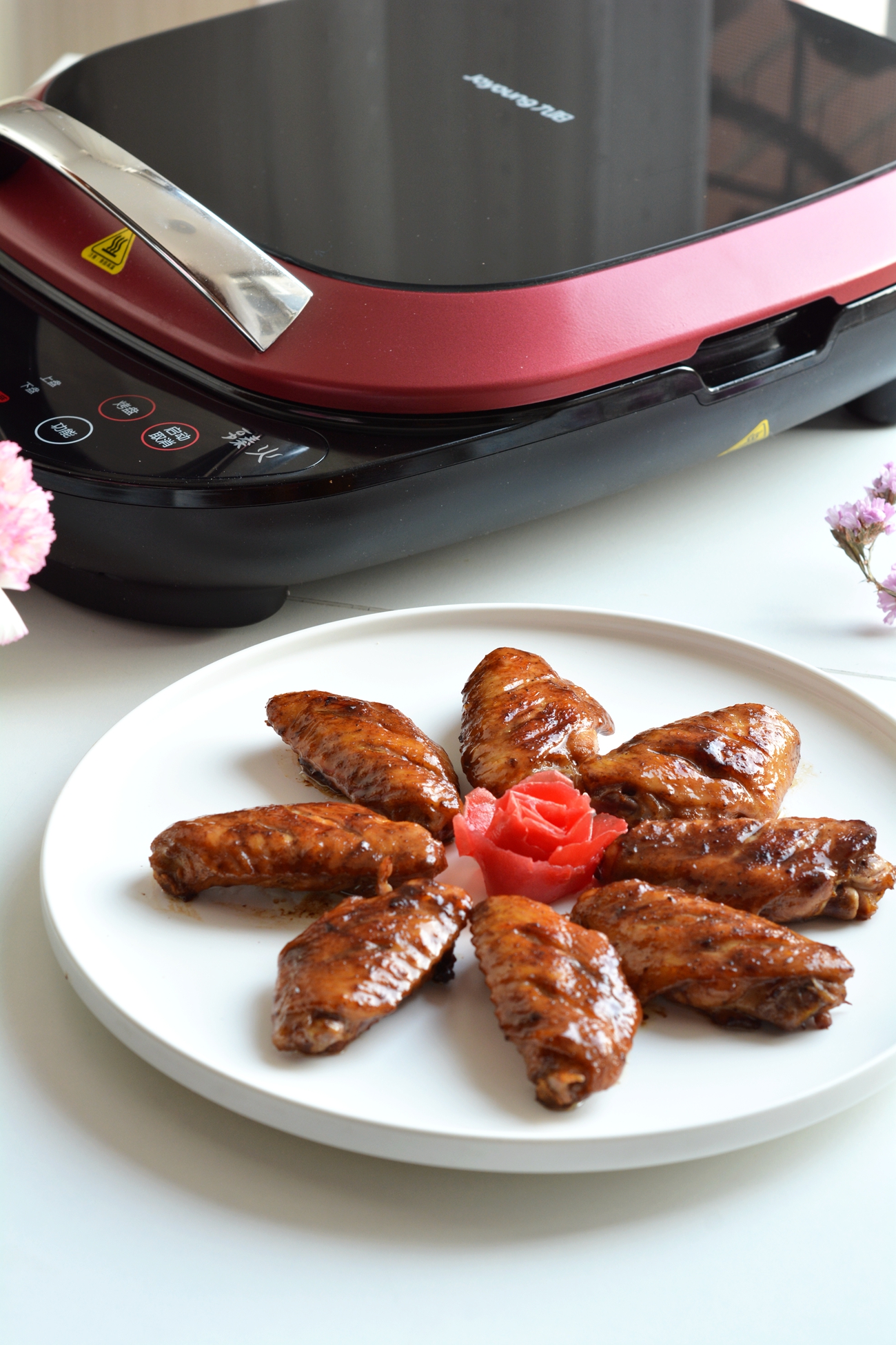 8. 听到滋滋声,将上盖打开,喷香油润的红烧鸡翅中就做好啦!