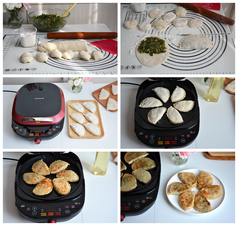 3. 小火烙,电饼铛方便,上下加热;如果用平底锅,小火盖盖子烙即可。