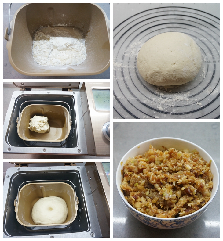 材料:中筋面粉250克,酵母3克,凉水155克,白菜肉馅一碗