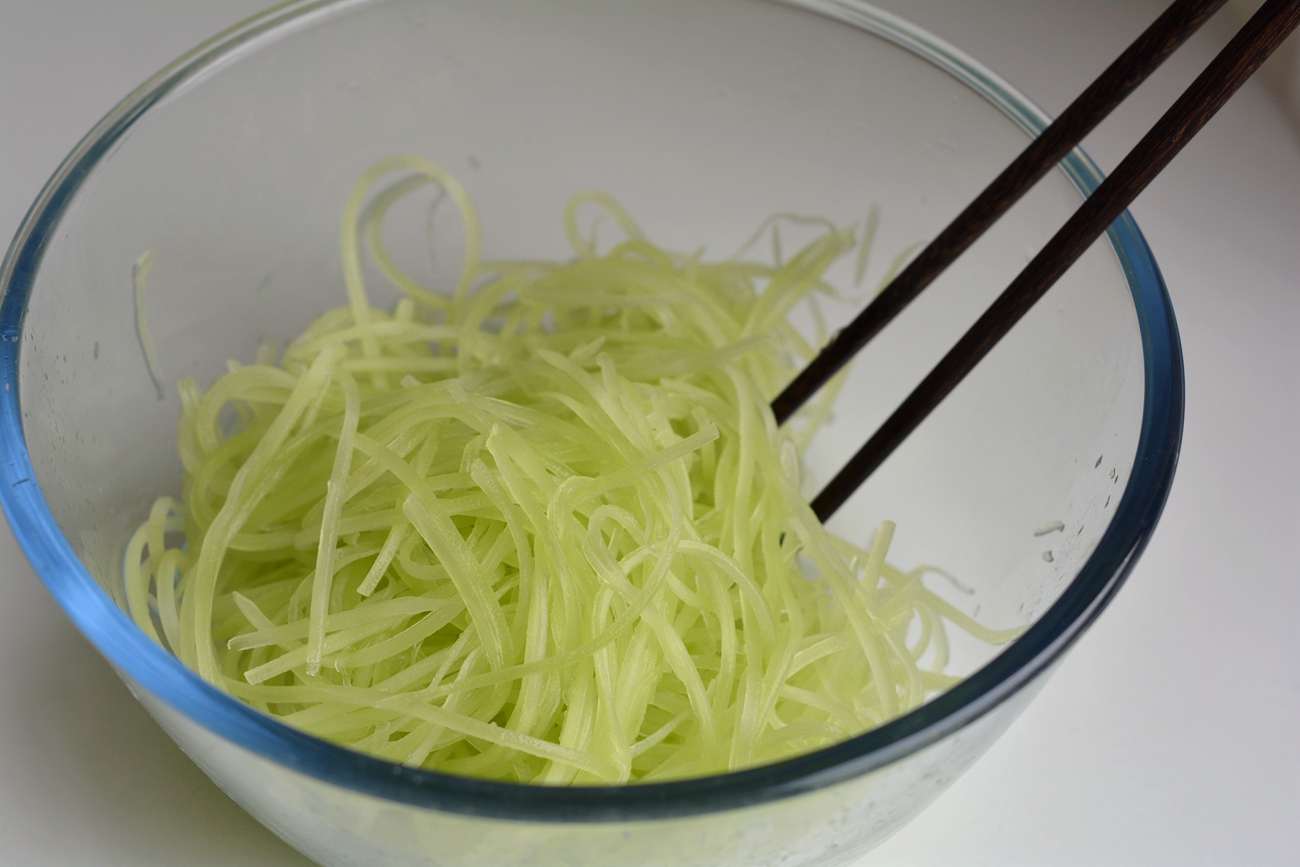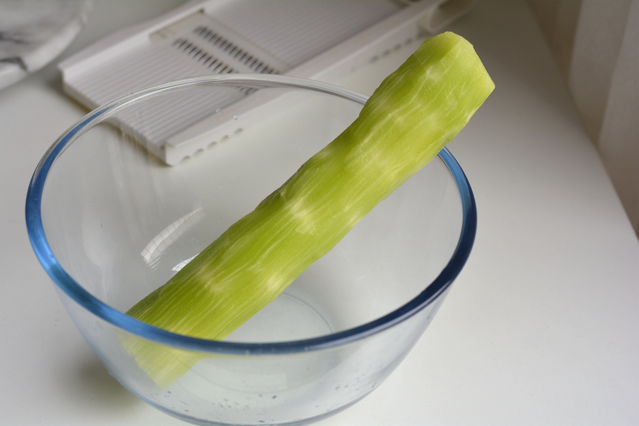材料:莴笋半根,盐少许,粗油糍粑辣适量