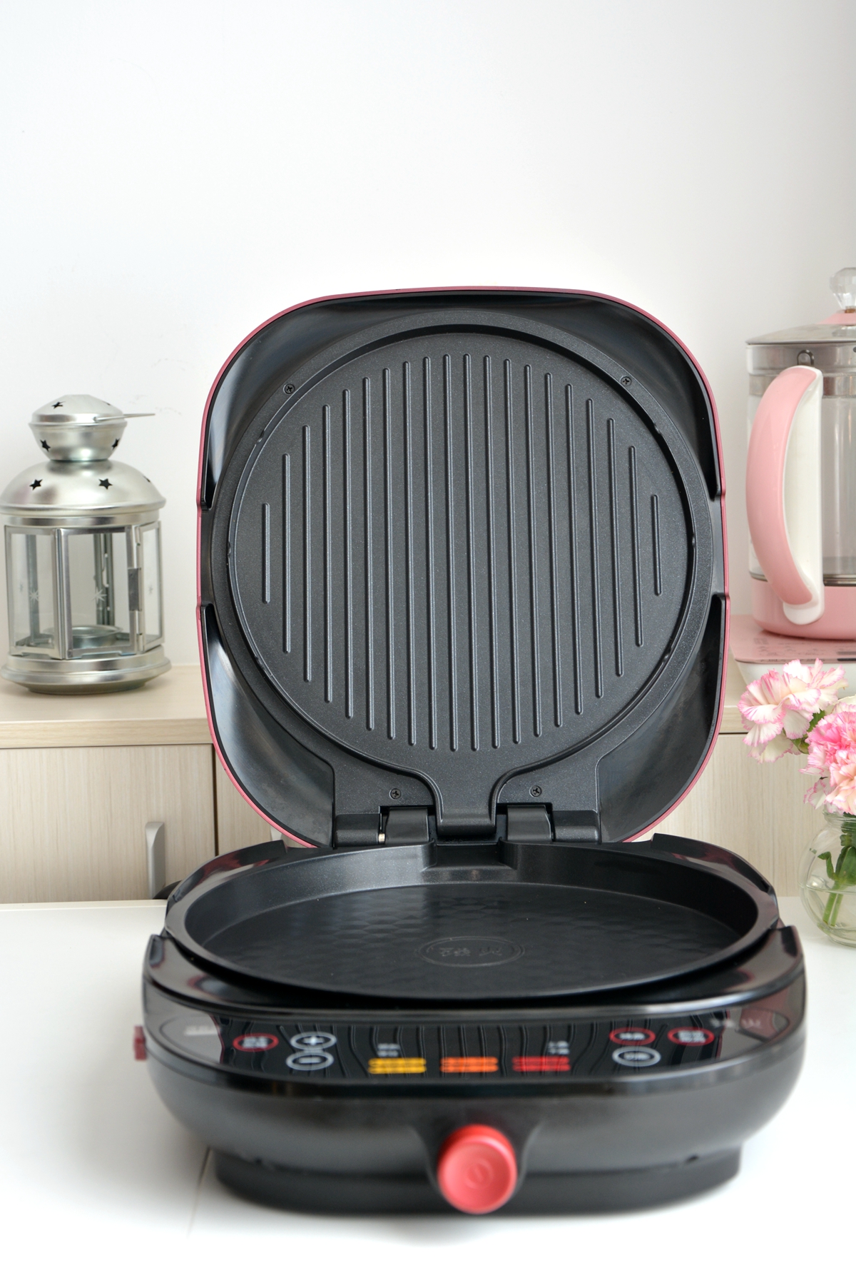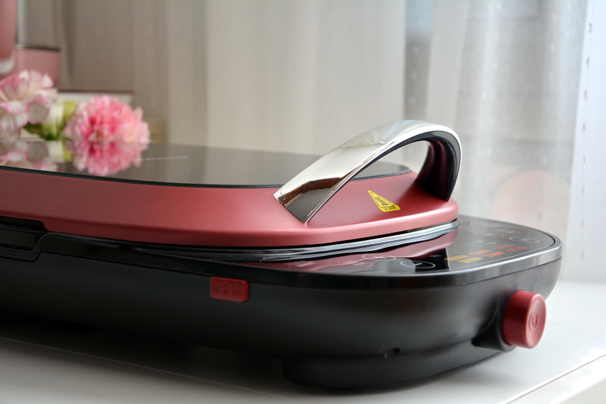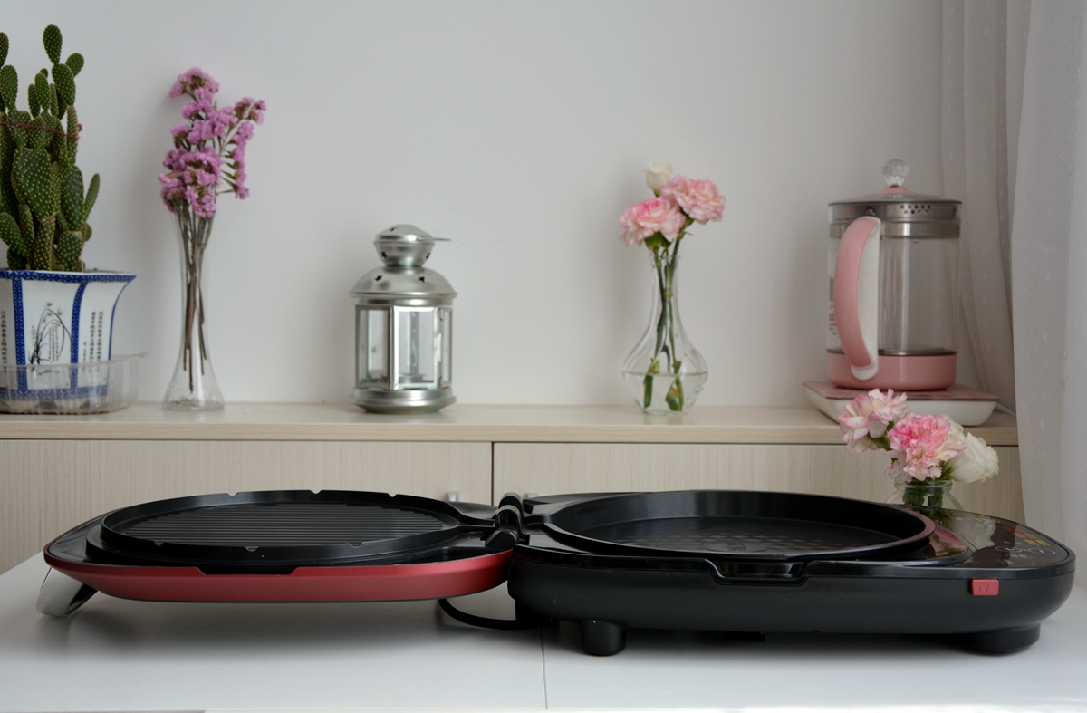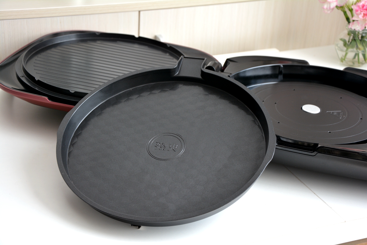也可以将上盘180度放平,原先的把手就可以当支撑来使用了,当烧烤盘也是很方便的。