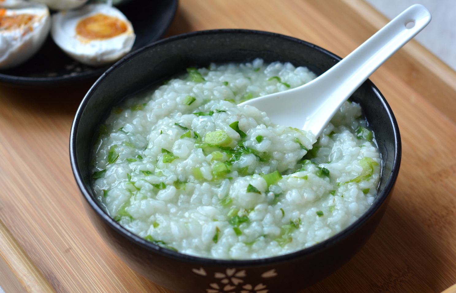 3. 待粥煮到香香糯糯的时候,将莴笋叶入粥里,再加盐关火;