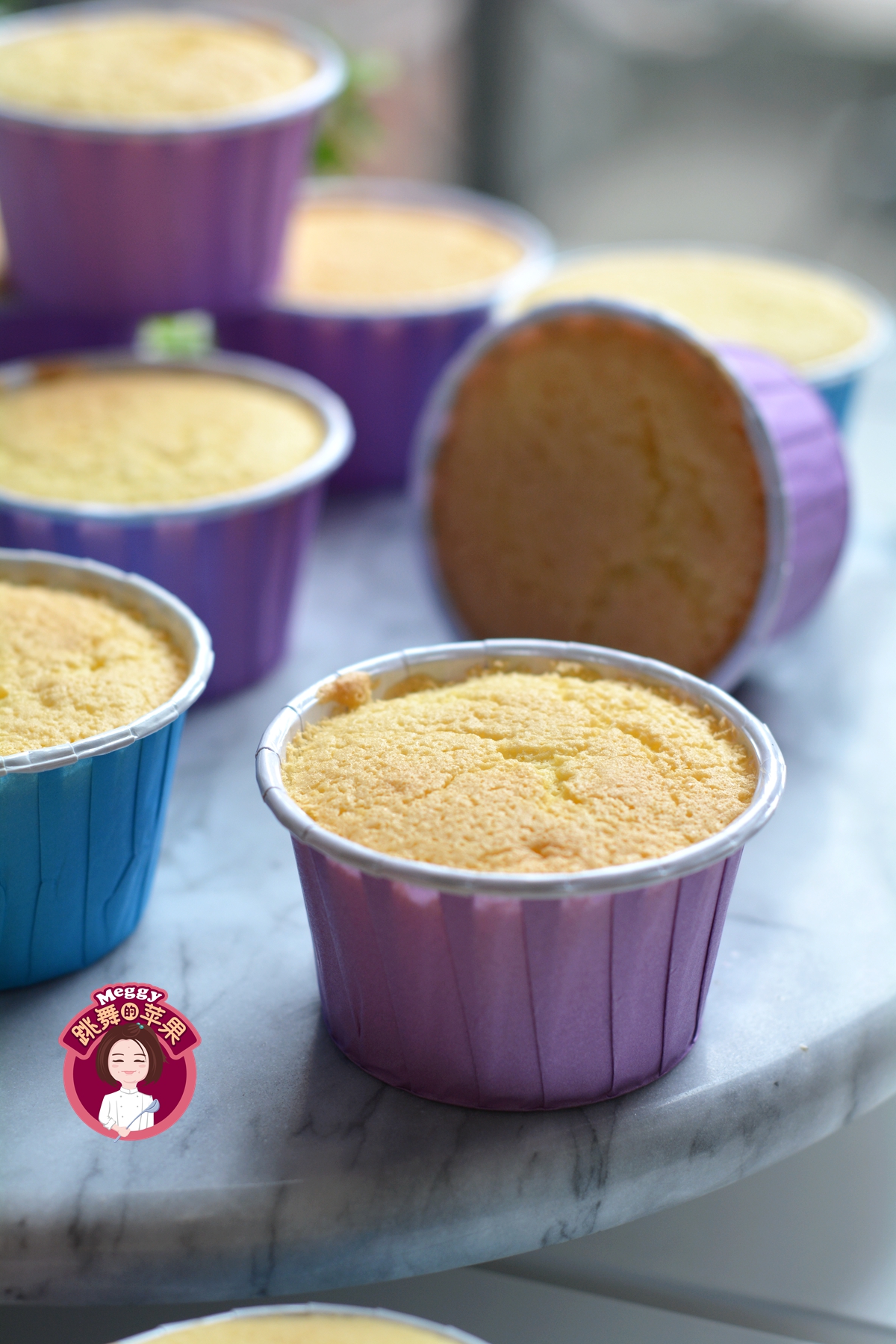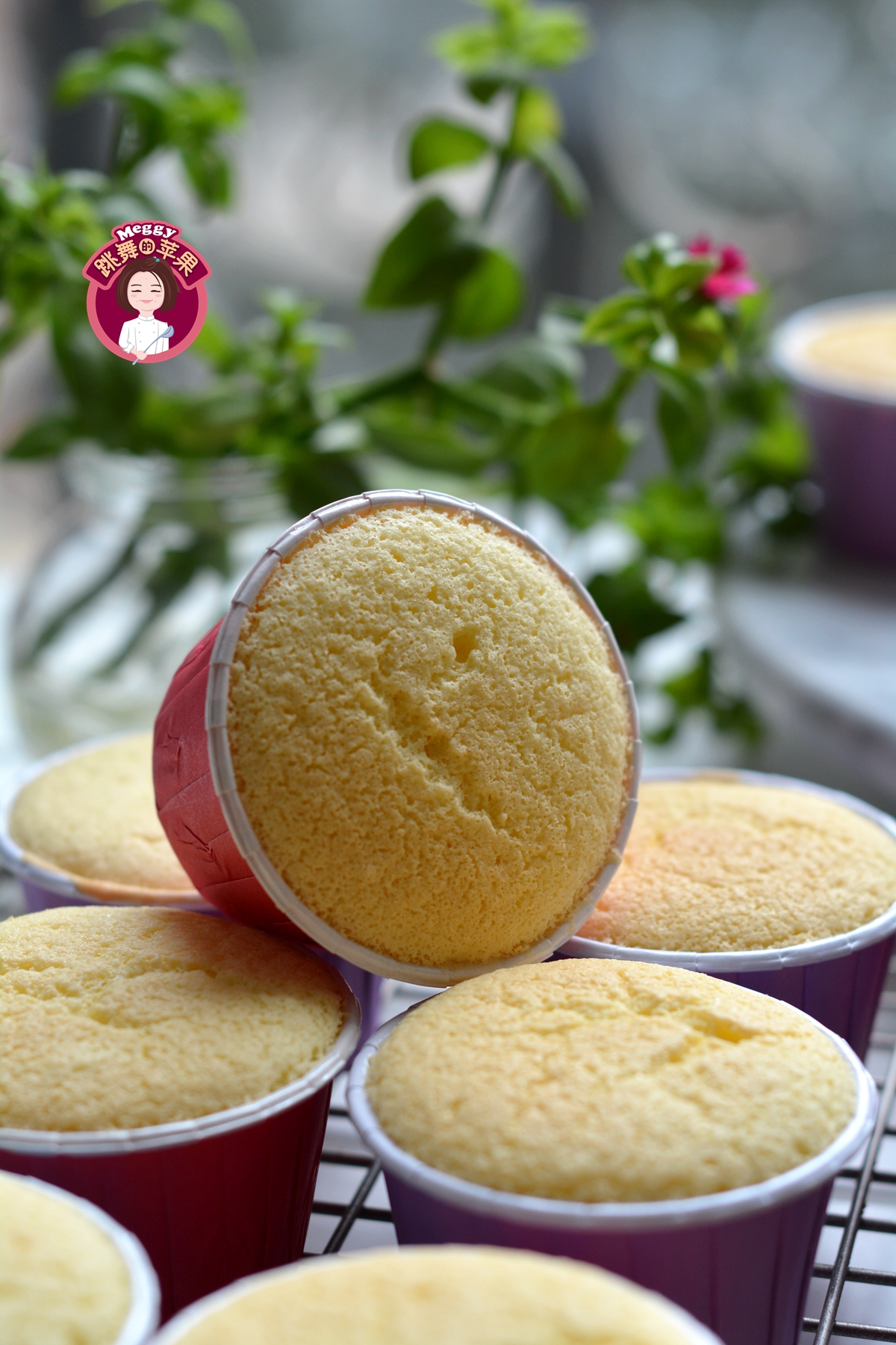 相比戚风来说,海绵蛋糕的口感更为扎实,但成功的海绵蛋糕组织依然是细腻的。我做了两炉杯子海绵蛋糕。表面有些平的是第一炉,蛋糕糊只装了7分满;另一些表面圆乎乎的是直播时做的,蛋糕糊装了8分满。蛋糕可以直接吃,也可以做些表面装饰用。所以7分、8分满就看你喜欢哪种的了。