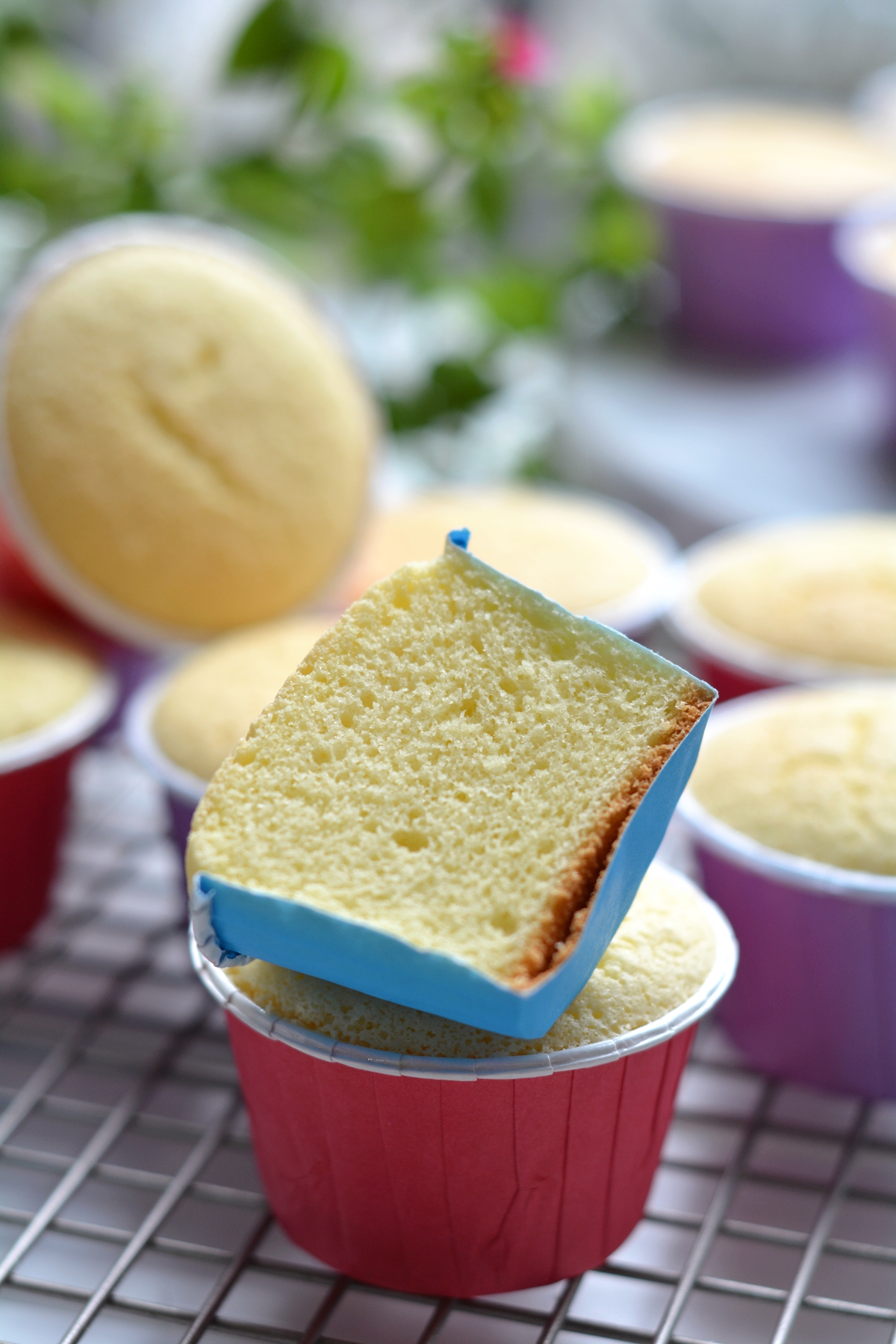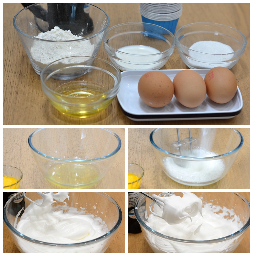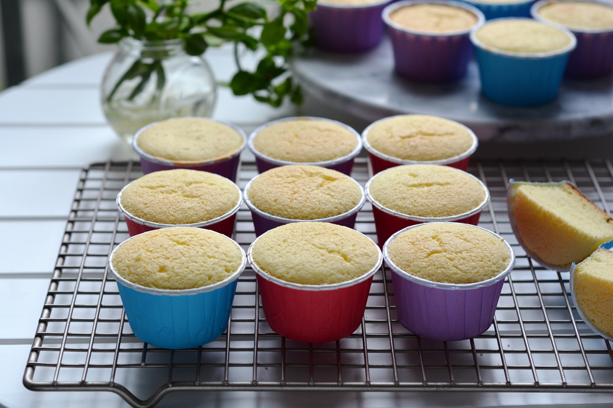 家里还有几撂纸杯没有用完,各种颜色和形状的都有,放在柜子里一是占空间,二是辜负了它们的美貌,所以今天我用它们做了这些纸杯蛋糕。考虑到用小纸杯做戚风蛋糕表面容易起皱,影响颜值,所以我用了海绵蛋糕的方子。