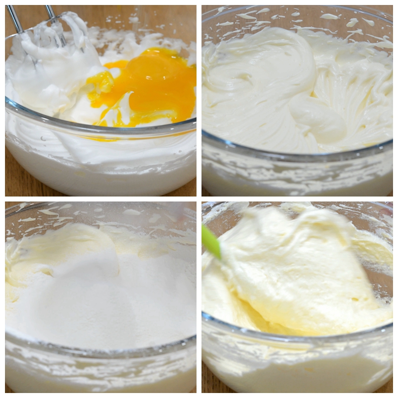 7. 用打蛋器低速搅拌一分钟,蛋黄和蛋白充分混合在一起就可以了;