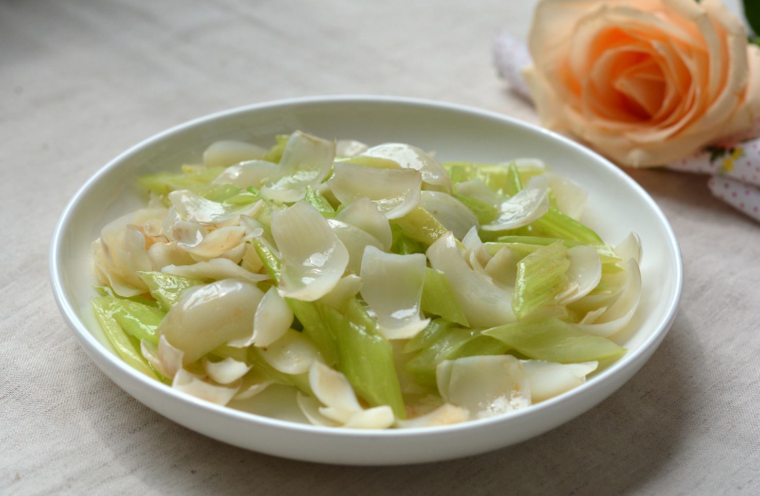 芹菜炒百合少油少盐,只需几分钟就上桌,是一道男女老少都喜欢的小菜。对于想瘦身的女生来讲,其富含植物纤维,还能起到清肠、减脂的效果。