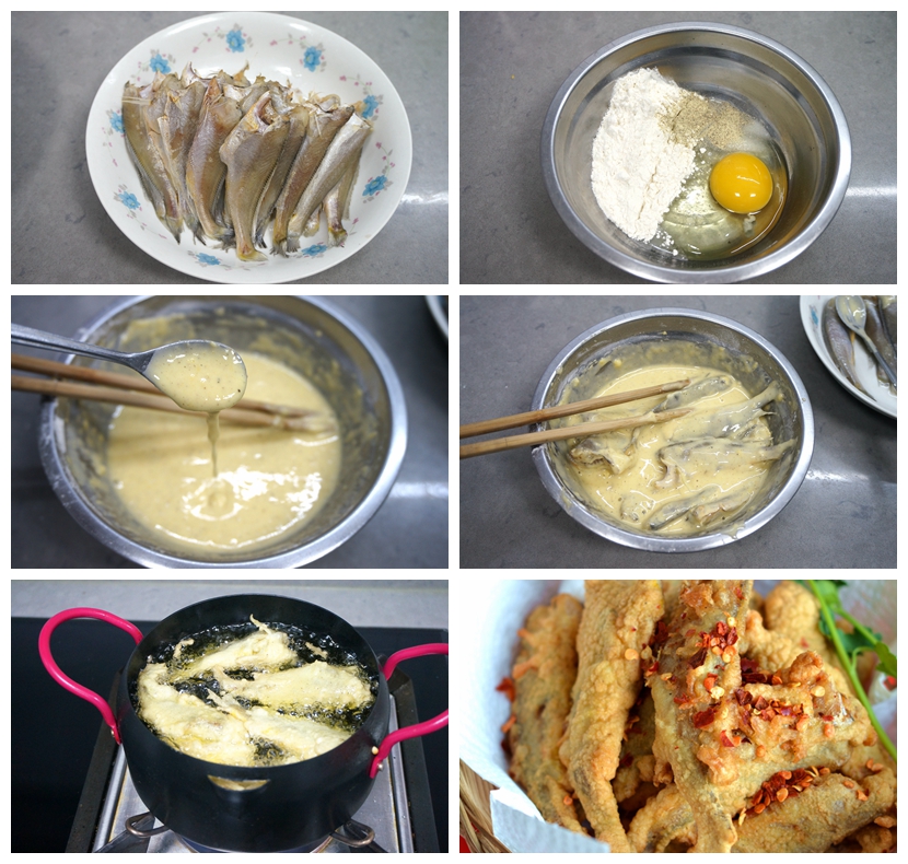 1. 小黄鱼去头去内脏,清洗干净,沥干水;