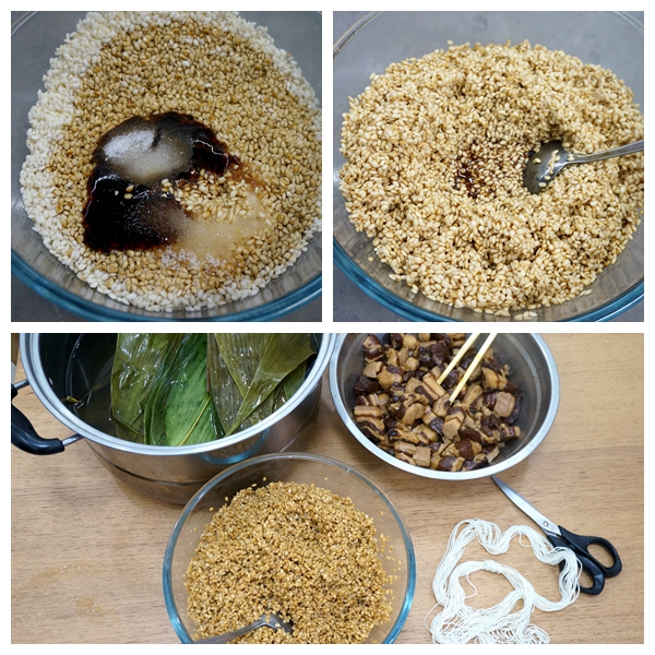 1. 糯米清洗后直接用酱油等调料来浸泡,想吃口感瓷实的可以少泡会儿,想吃口感软糯的可以多泡会儿;那么煮粽子时间要适当延长,煮粽子的汤水也要多放些,尽可能让粽子们都能浸在水中;