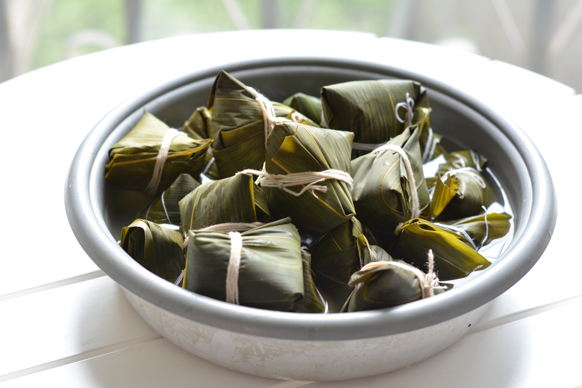 2. 干粽叶一定要泡透才有柔软有弹性,粽叶的质量参差不齐,种类也不一样,按自己的喜欢来挑选吧;