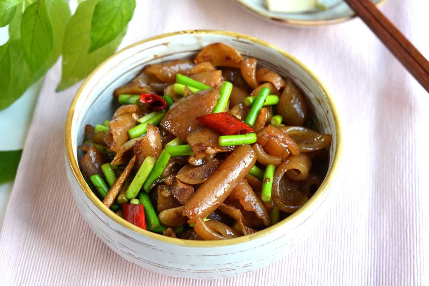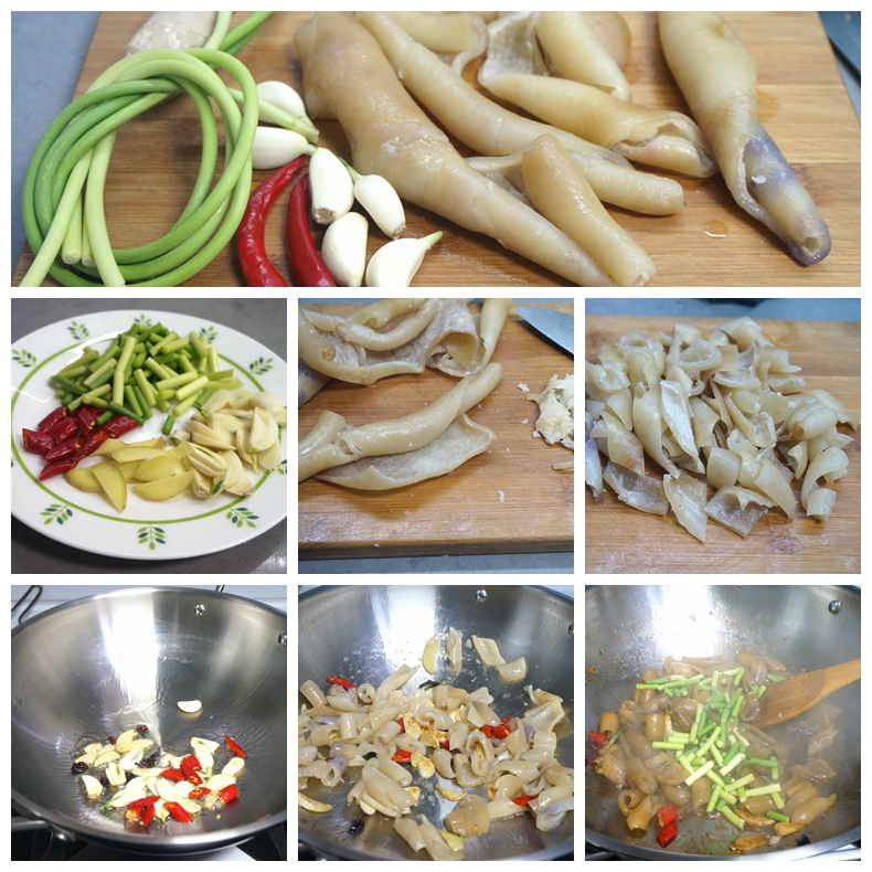 【蒜薹干辣椒炒肉皮】