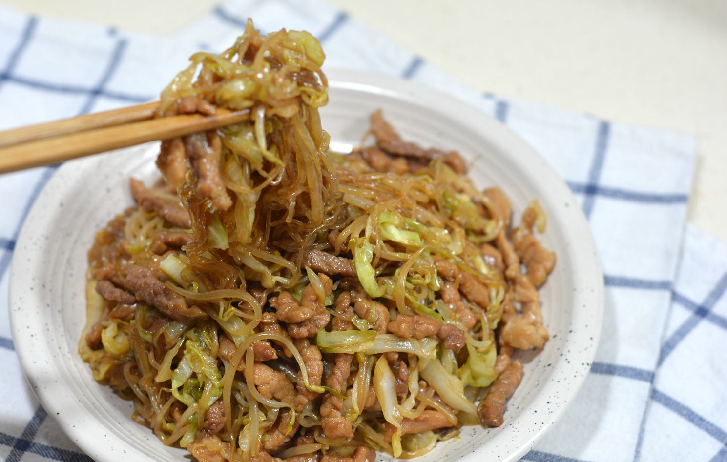 【牛肉粉丝炒合菜】