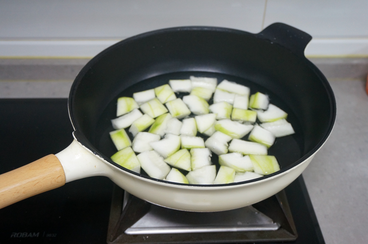 冬瓜是从乡下小姨那里摘来的,一分为二正好吃两顿,瓜皮很嫩,本来想带皮煮汤吃,但儿子说还是削皮更觉得嫩,所以,听小朋友的吧,削了皮的冬瓜确实嚼嚼就咽了。