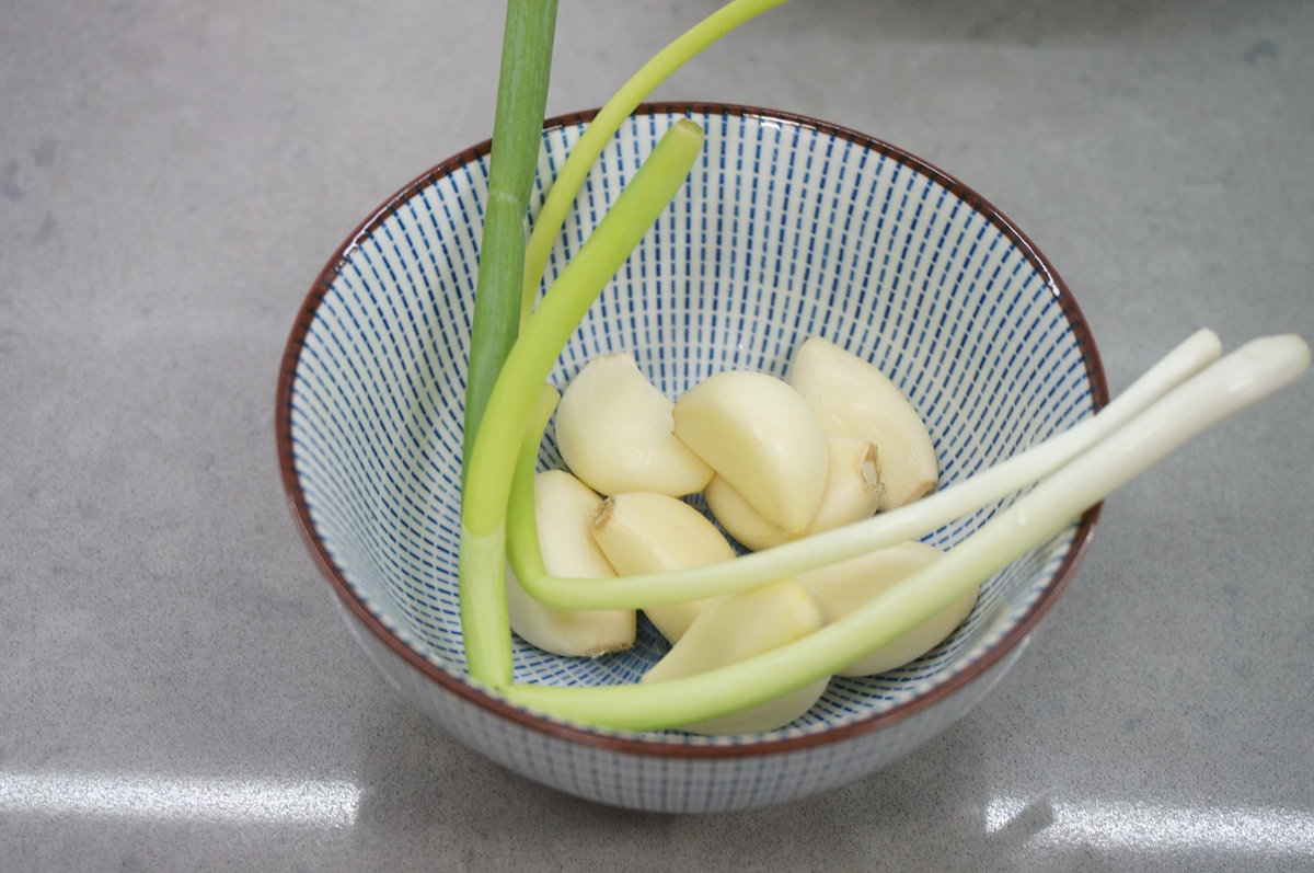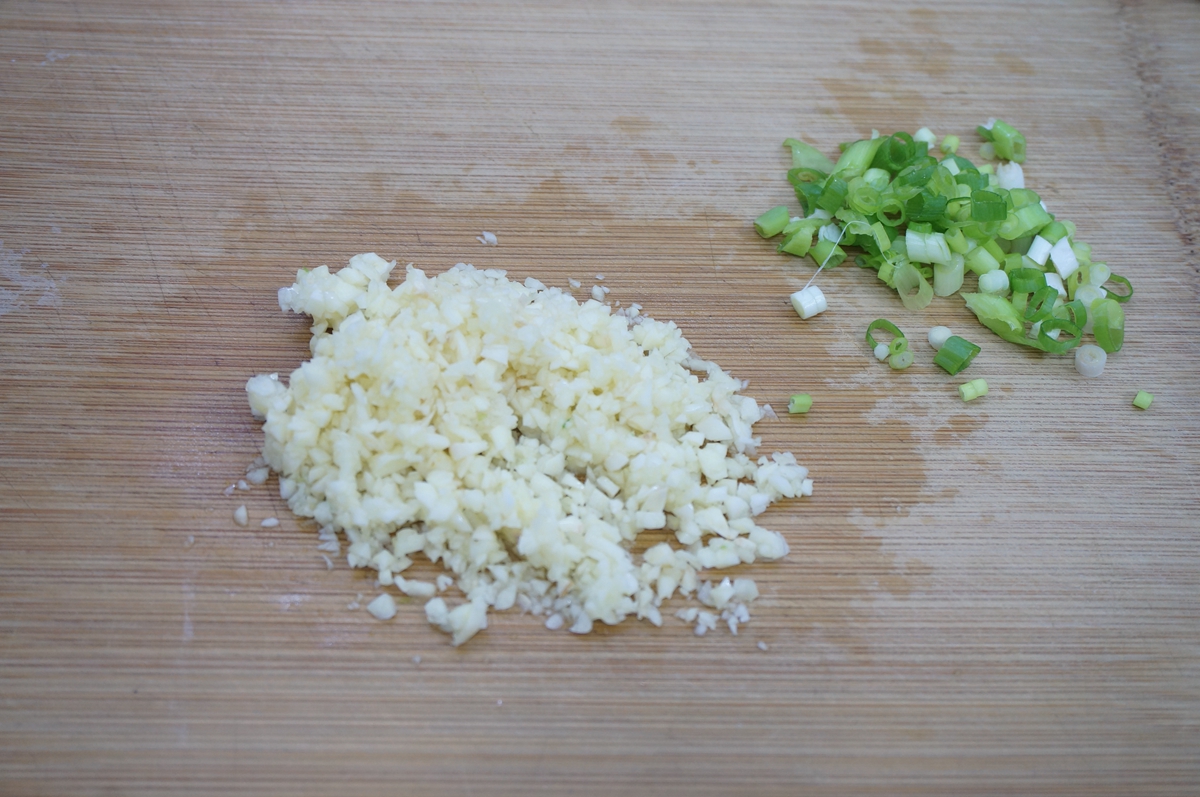材料:红秋葵10根,大蒜1头,香葱2根,油少许,蒸鱼豉油适量