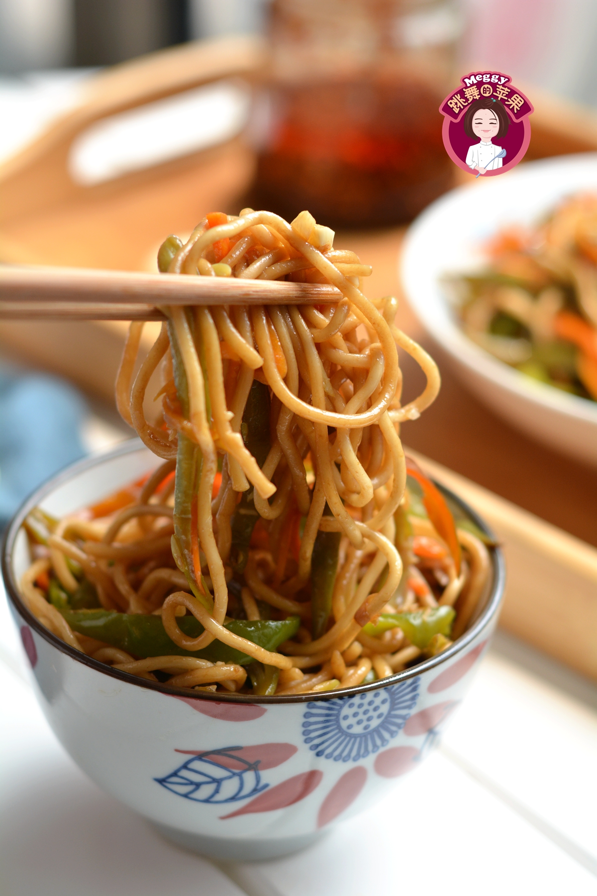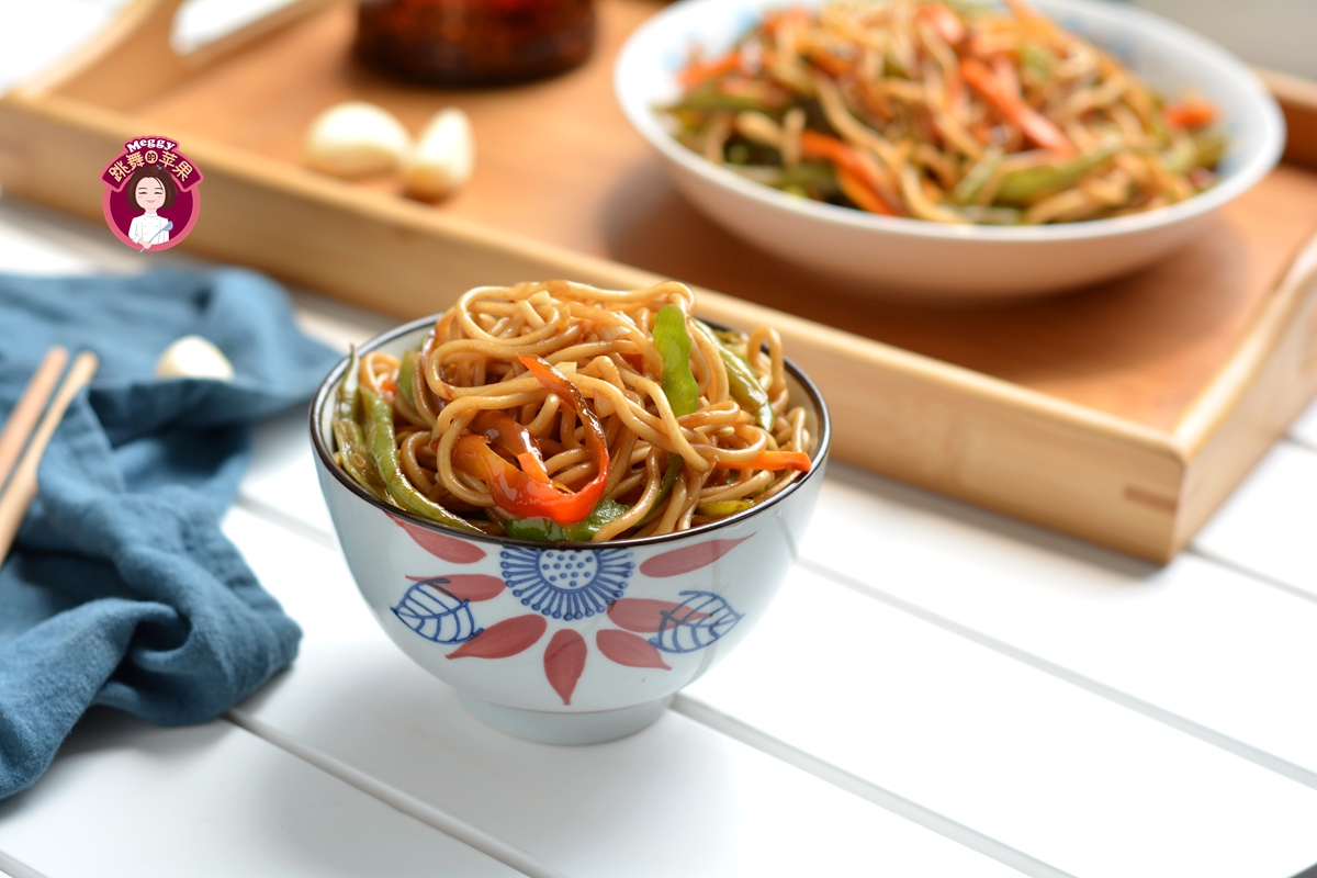 2. 辣椒丝和胡萝卜丝都能生吃,切成细细的丝,在锅里翻拌几下就能熟了,而且吃起来有脆感,为焖面增加了风味和色彩;