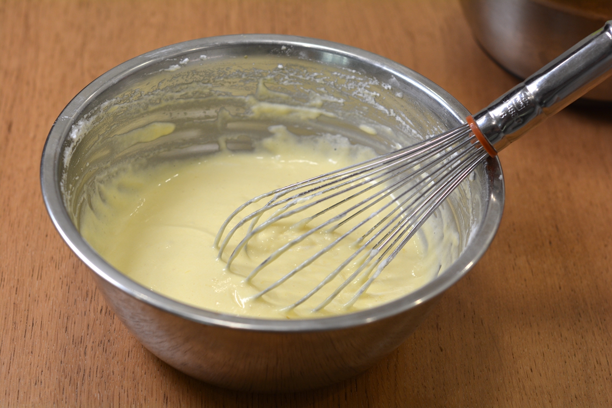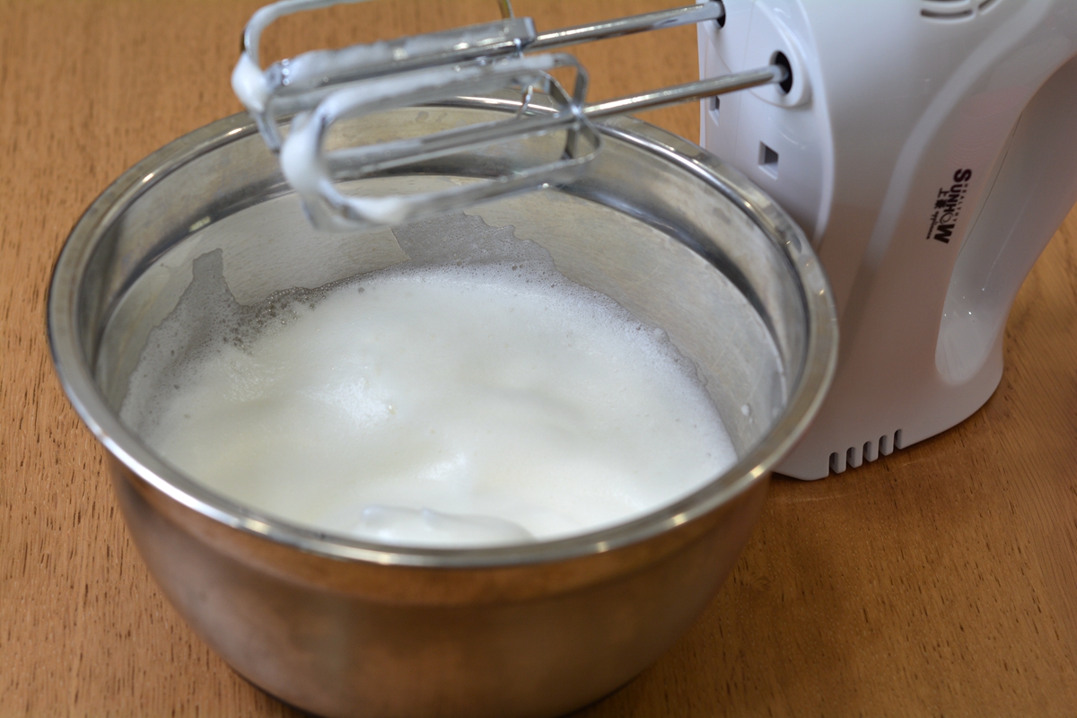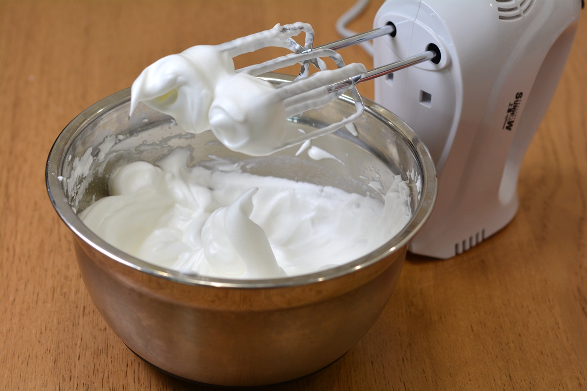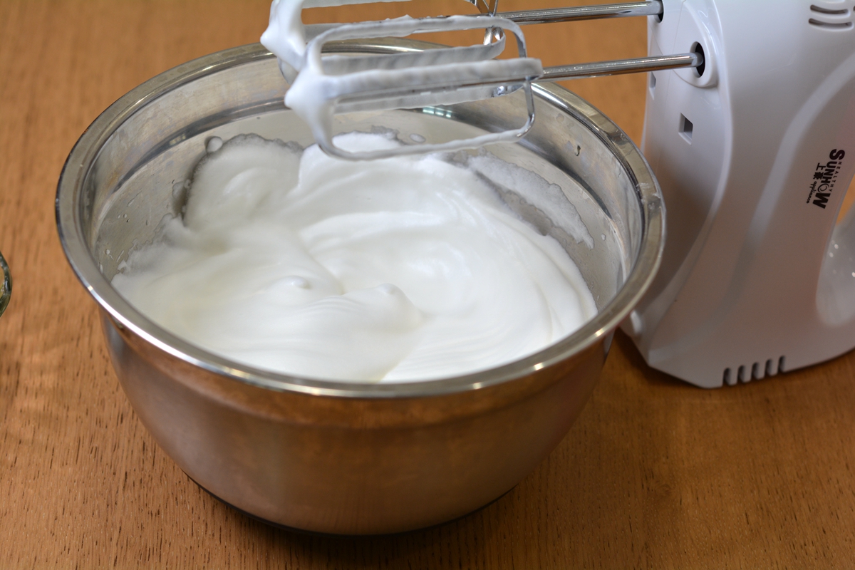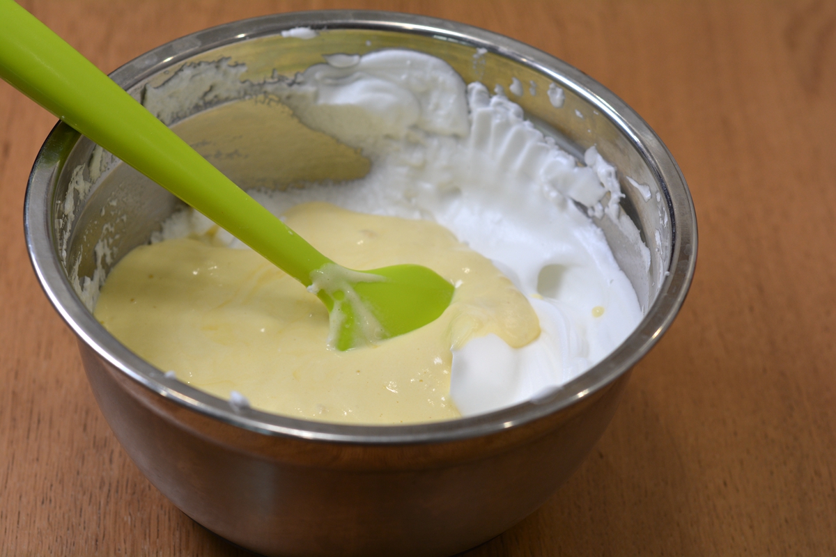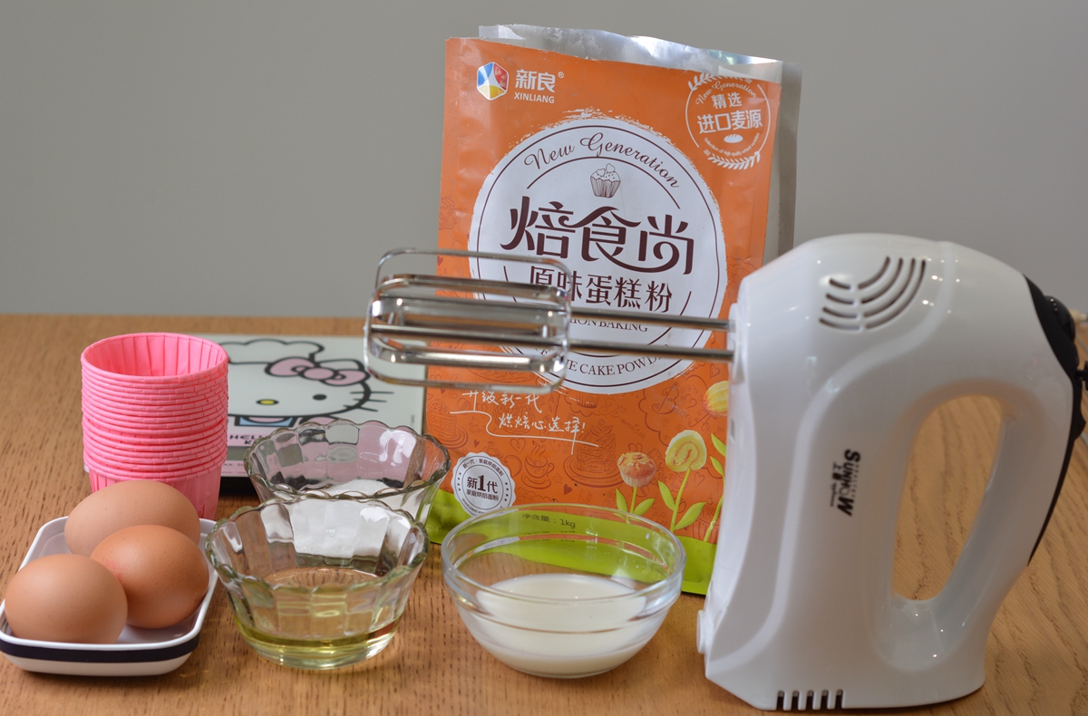 材料:新良原味蛋糕粉70克,65克带壳鸡蛋3个,玉米油30克,牛奶45克,蛋白用细砂糖45克 (此方也可用在6寸普通圆模上)
