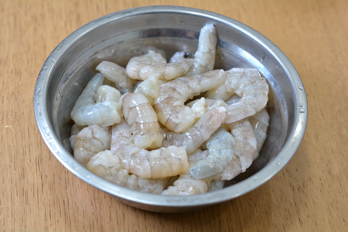 1. 大虾清洗干净,剥外壳留虾仁,清洗干净;