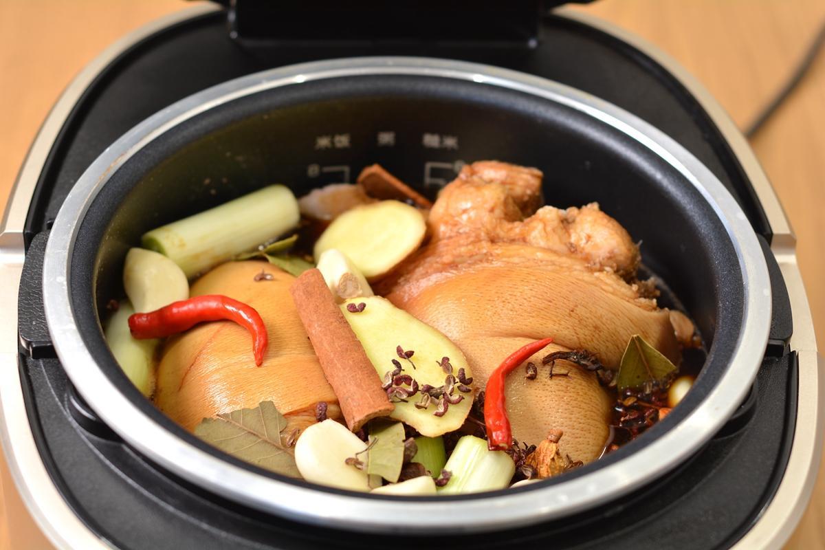 家家都有电饭煲,咱就用电饭煲来卤这肘子,特别省事儿。如果肘子小,可以一次卤两个,放冰箱冷藏着能吃三四顿;如果肘子大,或者带骨卤,一锅一个就成了。当然还得根据您的电饭煲的容量大小来决定。调料也都是极家常的,无需东跑西颠到处寻摸。