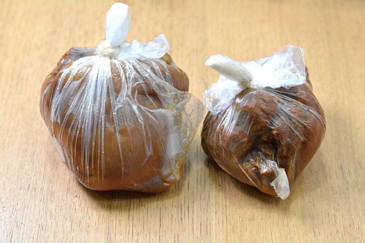 7. 将浸泡了4个小时的肘子捞出,放进保鲜袋中,旋转几下,让肘子在袋中更紧实;入冰箱冷藏保存3小时以上,凉后切片整齐而且不碎;