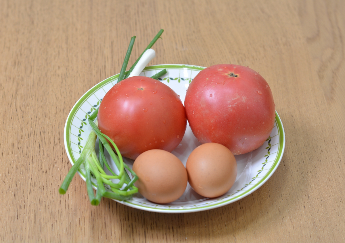 1. 两个大西红柿清洗干净,两个鸡蛋做一锅汤足矣,香葱1棵;