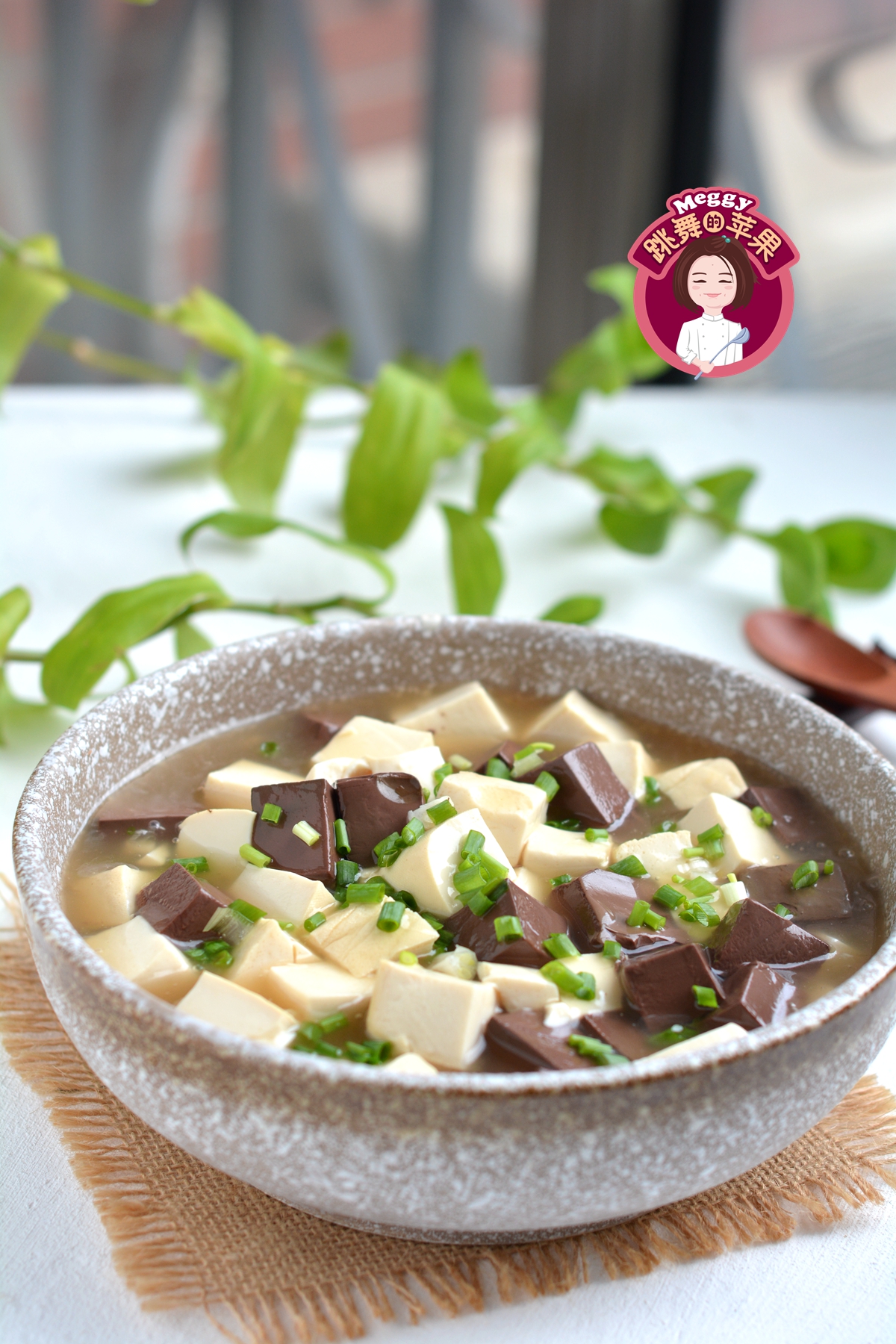 材料:豆腐1盒,鸭血1盒,淀粉1勺,蚝油适量,盐少许,香葱少许
