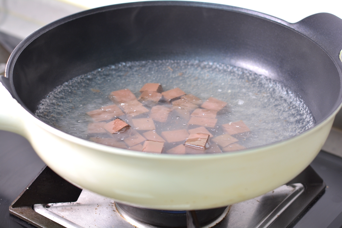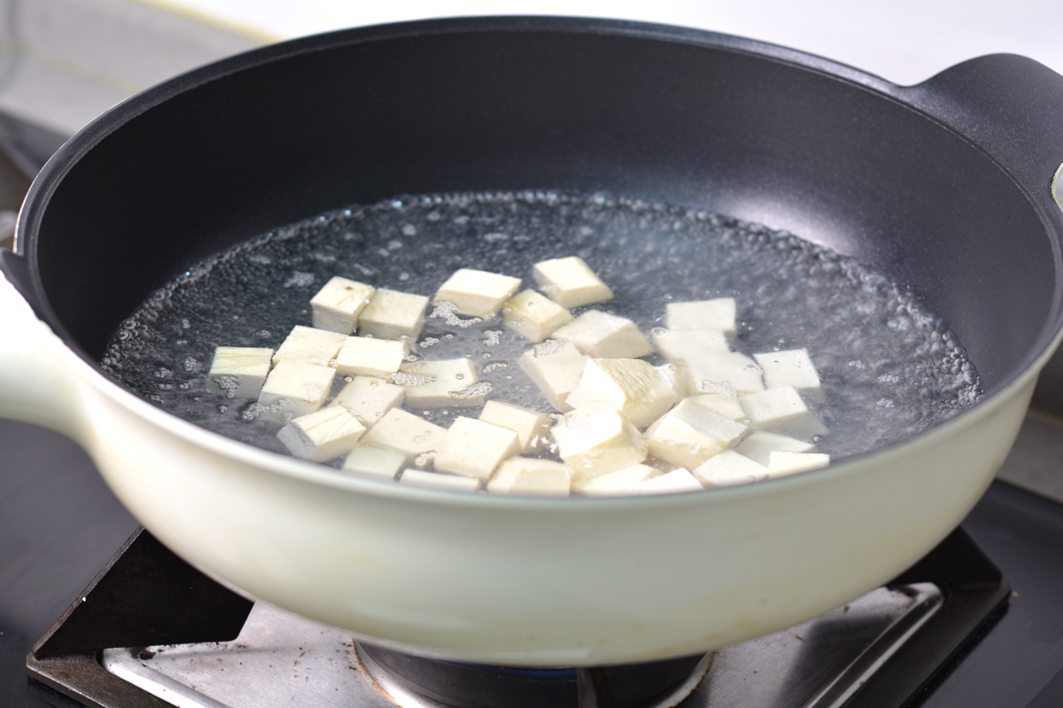 4. 烧一锅水,水开后先将豆腐焯一下去腥气,捞出;