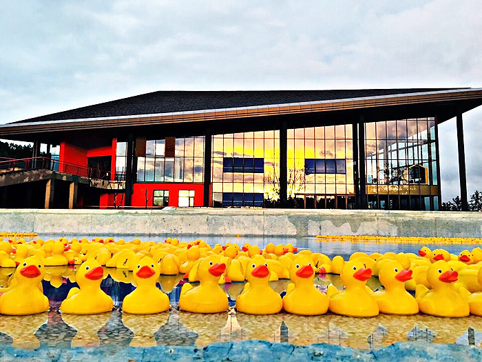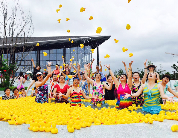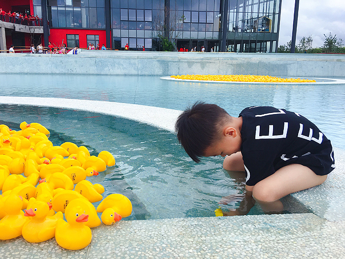 在汤泉广场与小黄鸭一起泡汤,广场汤池是之前很少见的泡汤玩法,新鲜感十足。