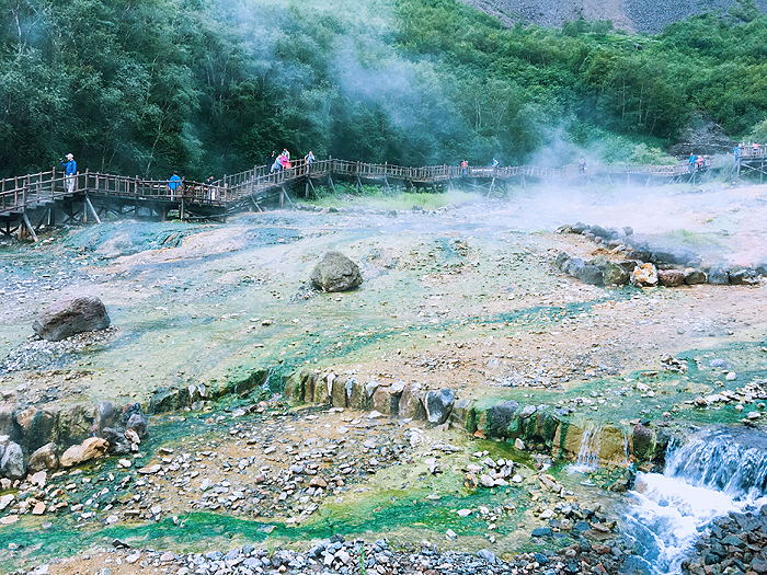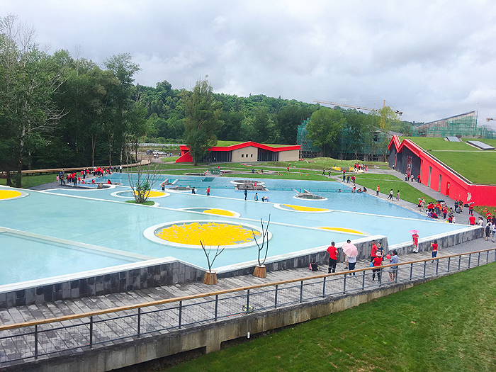 汤池温度不一、深浅不一,适合小朋友和不同年龄与需求的人,极其开阔的广场汤池,和自然条件完美结合,开阔有趣。