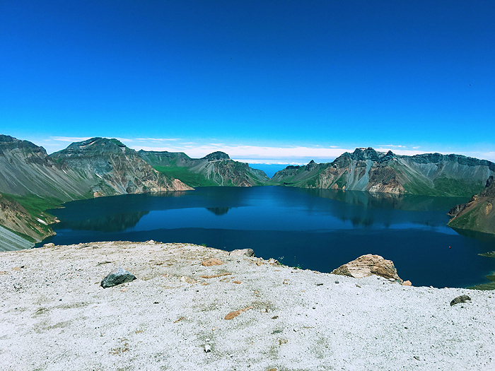长白山南坡之上的天池,这里是鸭绿江的发源地,区域内生态系统和谐,原始风貌保存完整;世界最高、最深的火山口湖——长白山天池在此较比西、北、东面展示的更加完美、恢弘。我们有幸第一次来长白山遇见天池。