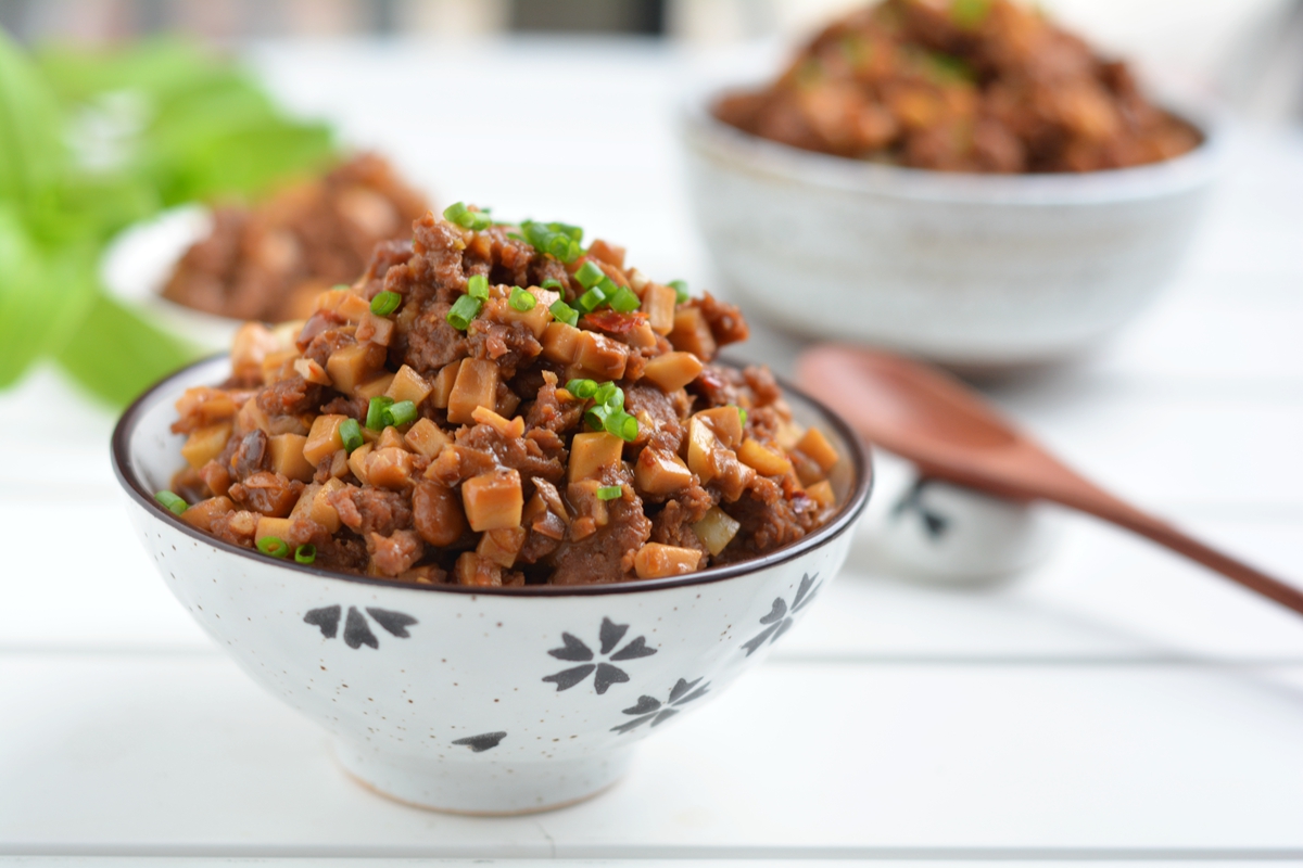 2. 还可以放豆豉,就成了杏鲍菇牛肉豆豉酱。以此类推,可以在这个基础上演变出多种下饭酱来。